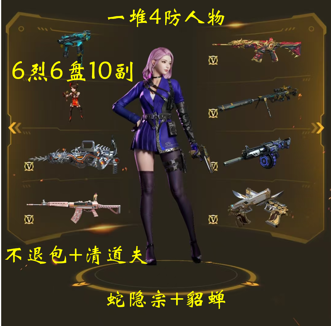 4防云悠悠蛇隐宗+6盘6烈斯泰尔蝴蝶异变清道夫传说圣灵裁决幻神丹凤QBZ金色蔷薇朱雀AA12雷霆