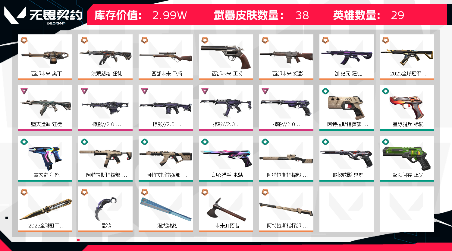 25冠军套装✨掠影2.0套装✨西部套装✨创纪元 流脓 弃王狂徒✨上号秒解冻结 您租赁过程中异地冻结请及时联系我们解决 请点击解除冻结,全天在线解冻 人头超过35以上就会导致炸鱼封禁,弹出炸鱼导致的禁赛拉黑⚠️如果上号正在有人玩,可能是上一租客留下的对局,不用着急退单,我们会赠送您时间游玩 ⚠️严禁挂机,如发现挂机,我们会根据违规程度对您进行拉黑处理!!! 禁止开挂!每个登录的账号都有实时监控,如发现开挂上号我们会立即对您拉黑! 谢谢各位租客支持;西部未来 奥丁,洪荒怒焰 狂徒,堕天遗武 狂徒,西部未来 飞将,西部未来 正义,