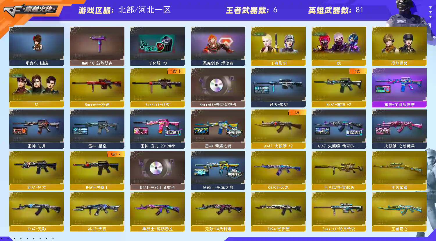 首页 > 租号大厅 > 穿越火线 > 网通区/河北一区 > 双全号✨幻神2枪带卡5皮欧欧宠儿星火|枪娘✨星神套双皮|G36C✨四防隼双蝴蝶刀+六烈斯泰尔✨满副武