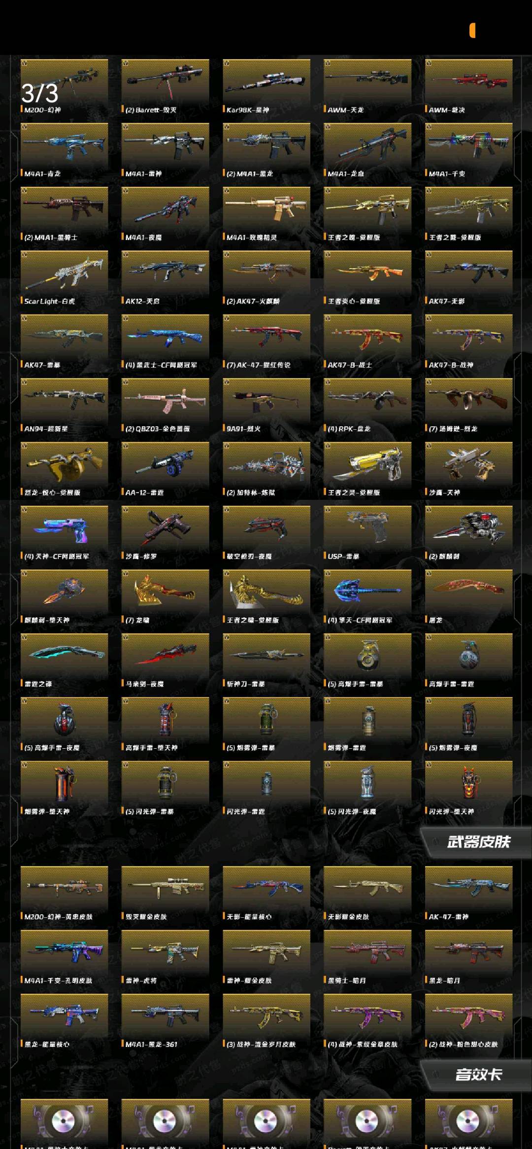115V/幻神黄忠/98K星神/斯太尔蝴蝶/ Usp雷暴/雷暴套装/夜魔套装/四盘七烈/收藏;USP-雷暴,RPK-盘龙,QBZ03-金色蔷薇,M200-幻神,Scar Light-白虎,Kar98K-星神,