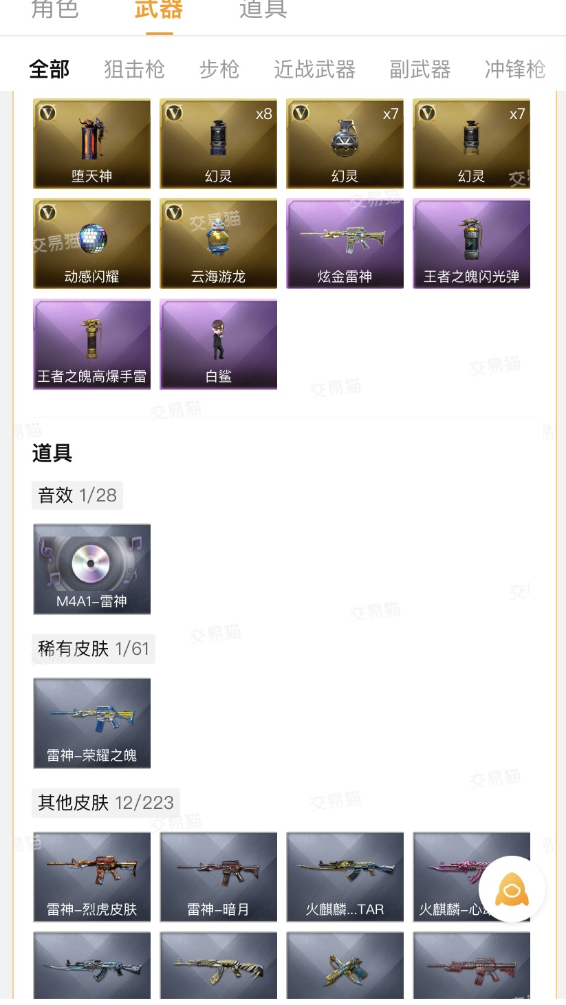 三传说,幻神,蝴蝶刀,荣耀世冠套,各种热门武器都有,;荣耀世冠-柯尔特,炽芒蝶刃,传说艾莉莎,QBZ03-金色蔷薇,M200-幻神,