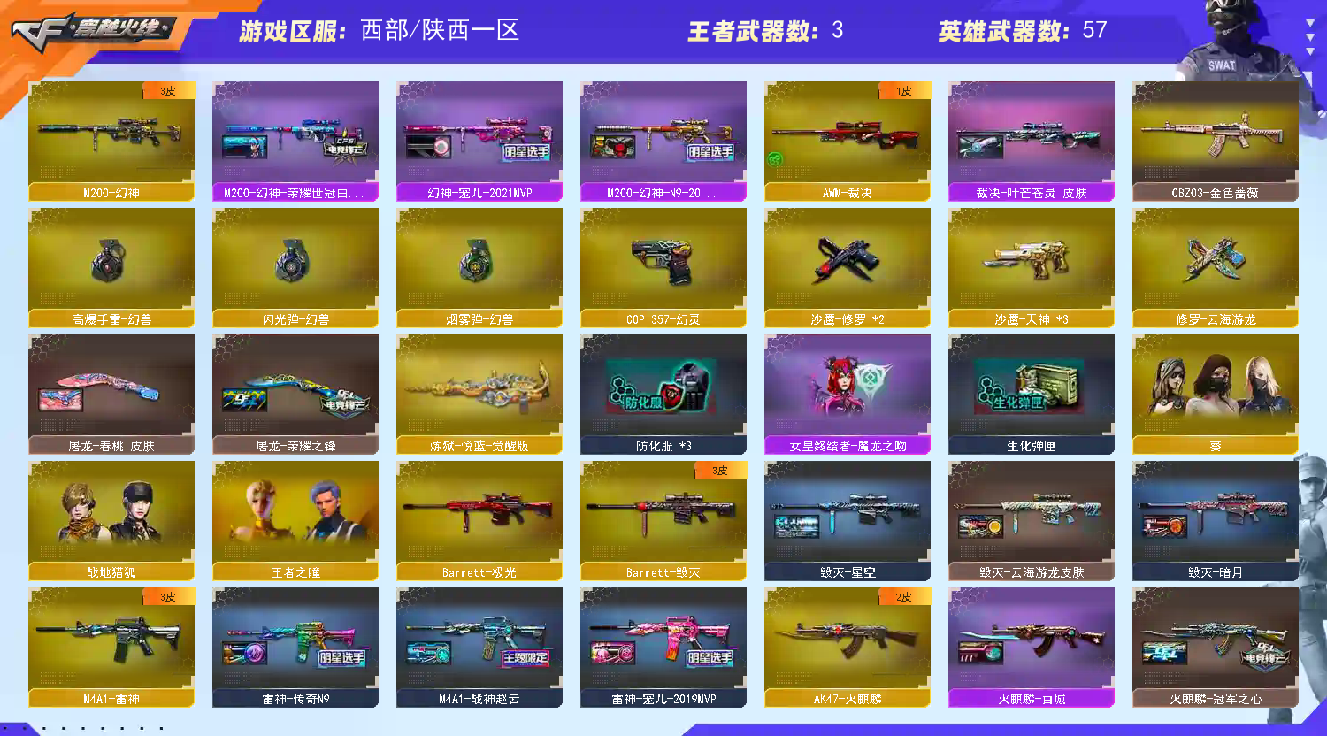 • 游戏区服:穿越火线 / 电信区 / 陕西一区