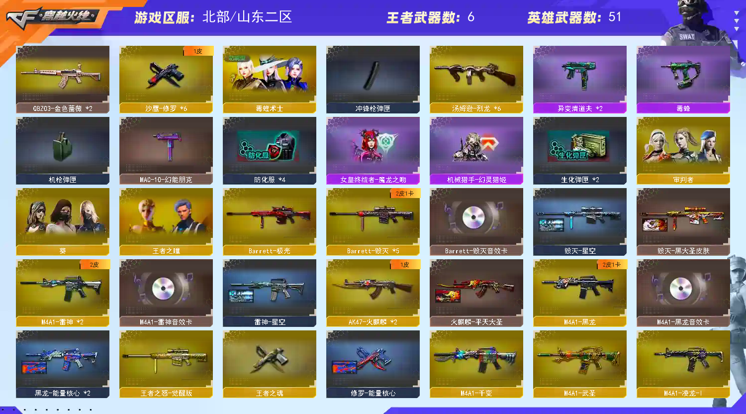 首页 > 租号大厅 > 穿越火线 > 网通区/山东二区 > ⚡毒蝰术士⚡6烈毒峰双清道夫⚡工坊生化⚡生化背包-北部生化号-弹夹满全-禁挂禁宏