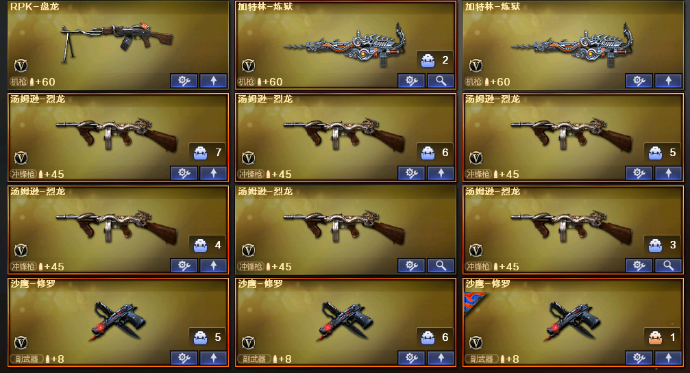 80v,6王者,1炫金,6盘6烈斯太尔蝴蝶炼狱生化爆破号,生化4防角色;RPK-盘龙,