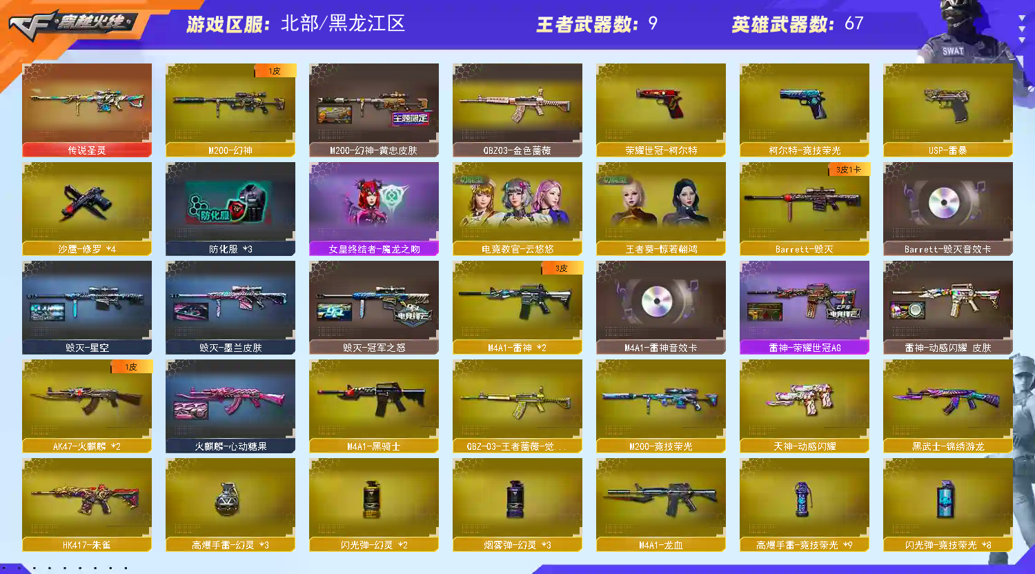 北部✅天花板✅传说圣灵✅幻神+黄忠✅雷神三件套✅毁灭三件套✅usp雷暴✅竞技荣光套✅荣耀Ag雷神