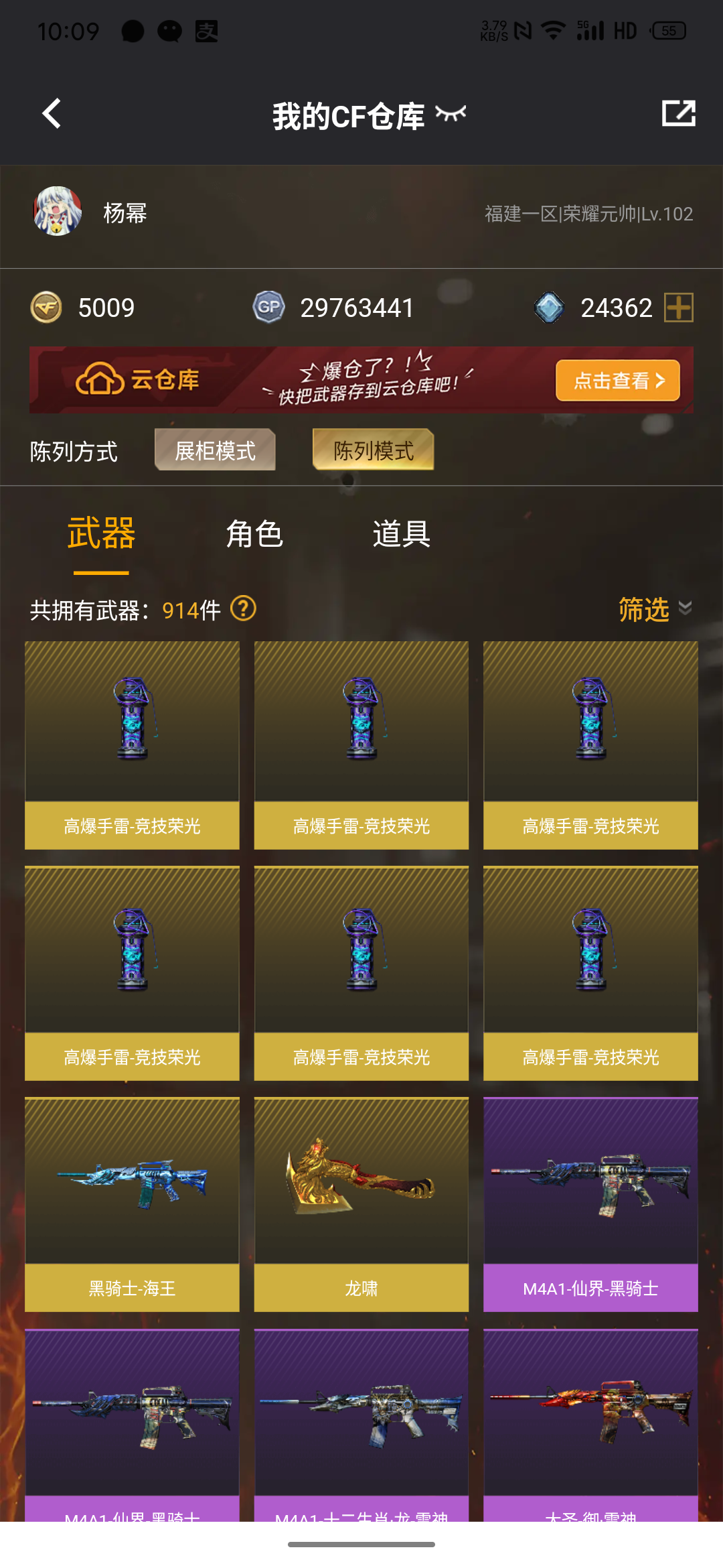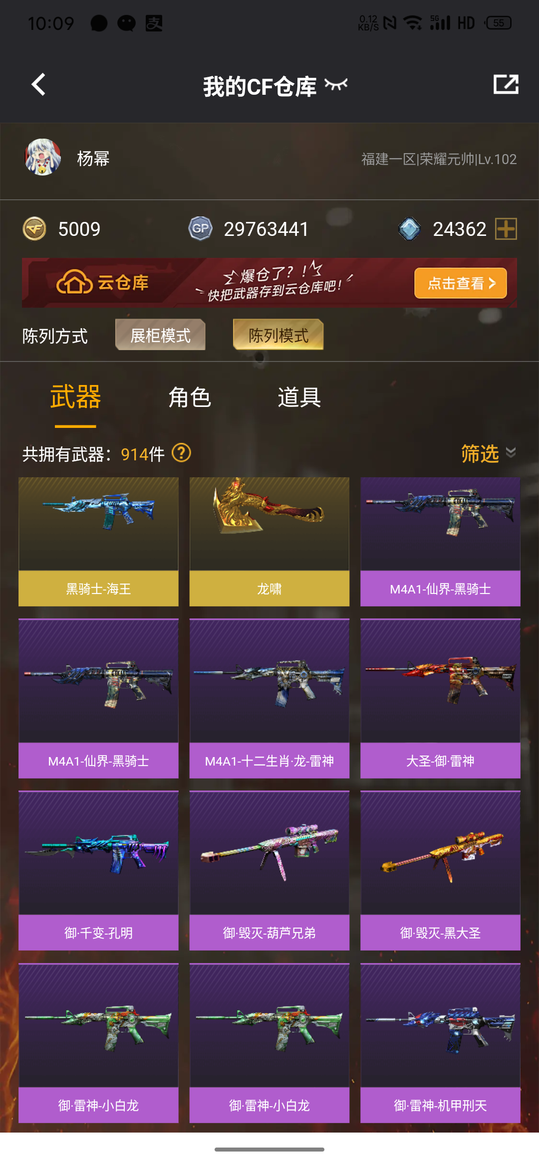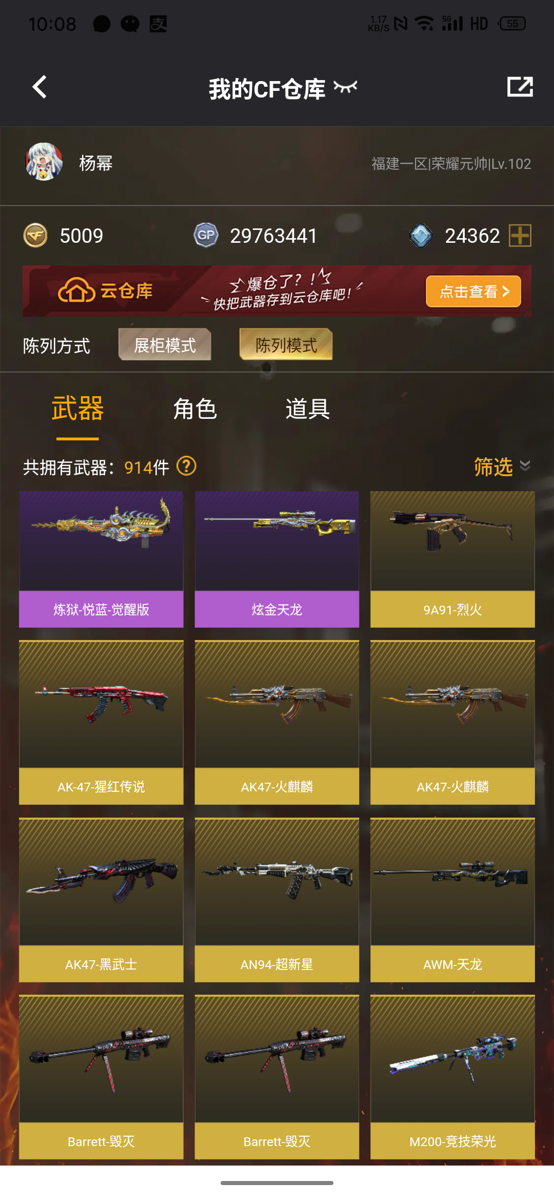 (允许排位)m200竞技荣光,barrett毁灭,M4A1雷神,ak47火麒麟,AWM天龙,m4a1黑龙;USP-雷暴,电竞教官-云悠悠,QBZ03-金色蔷薇,