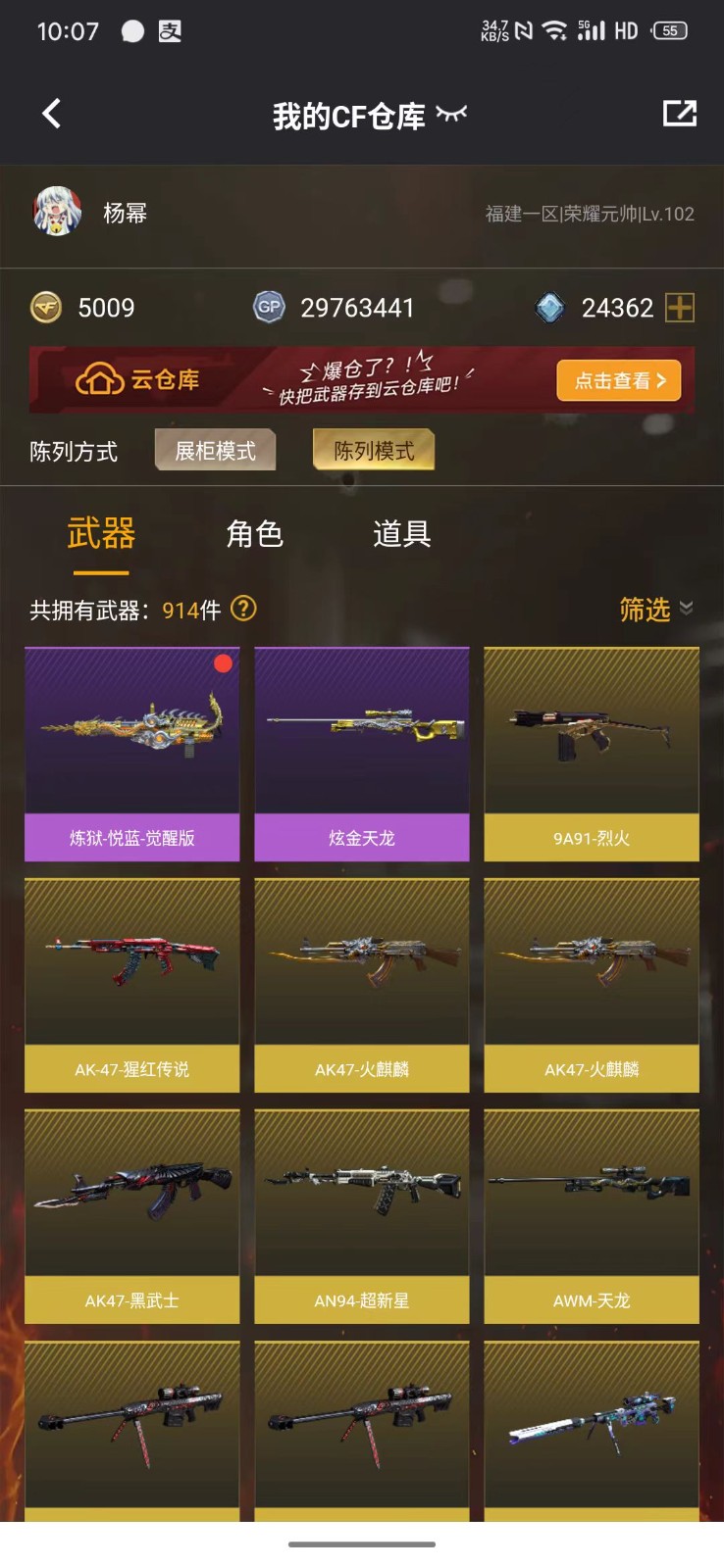 • 游戏区服:穿越火线 / 电信区 / 福建一区