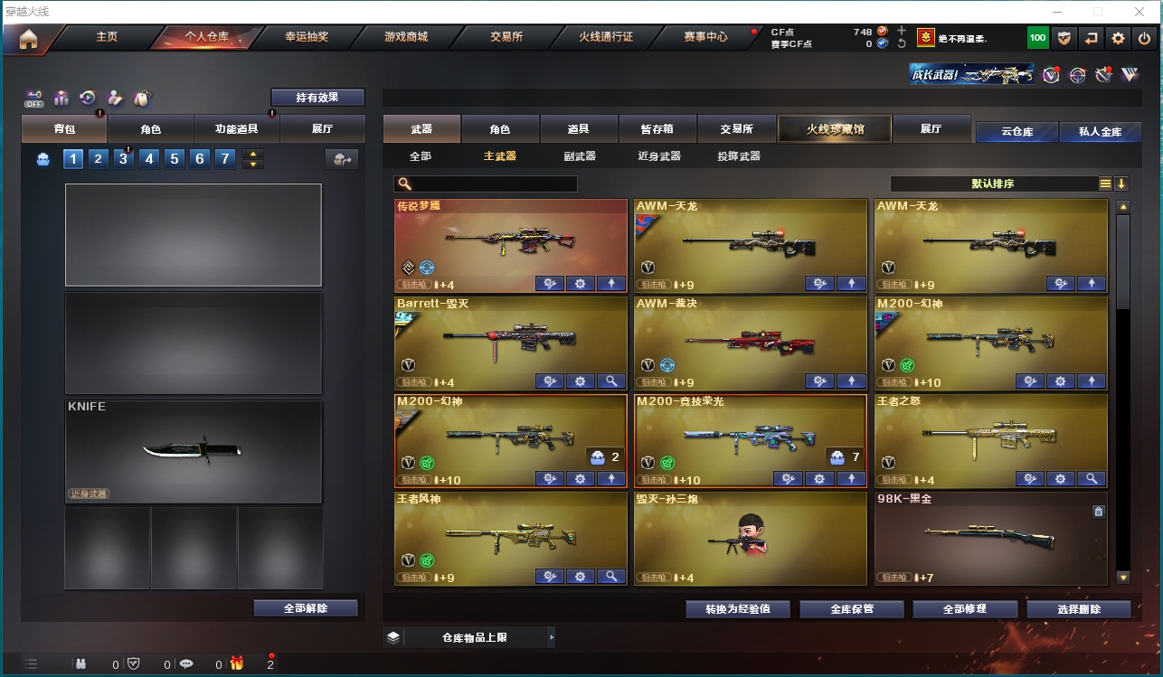 73v5王者2炫金可排位【竞技荣光套/传说梦魇/2把M200幻神+幻神黄忠+幻神荣耀世冠白鲨+幻神紫橙光效/王者风神-觉醒版/Knife-冠军之刃/M200竞技荣光+柯尔特竞技荣光+擎天竞技荣光/M4A1-青龙/QBZ03-金色蔷薇/死亡之眼/2盘龙/2炼狱/2烈龙/2修罗/天神/COP357-雷霆/USP-雷暴/尼泊尔雷霆/1套雷霆套/1套雷暴套/5套竞技荣光雷/】【黑骑士音效卡/毁灭音效卡/】【/毁灭-冠军之怒/QBZ03-荣耀世冠白鲨/QBZ03-巅峰荣耀皮肤/火麒麟-巅峰荣耀/擎天-冠军之击/天龙-能量核心/雷神-暗月/黑骑士-战神马超/修罗-星空/雷神-能量核心/黑骑士-暗月/黑骑士耀金皮肤/毁灭-星空/AK47-B-常胜将军-孙权/麒麟刺-荣耀世冠白鲨/修罗-能量核心/火麒麟-轻羽皮肤/修罗-CFSTAR/火麒麟-CFSTAR/】【四防】电竞教官-云悠悠/【四防】隼/王者-零/葵/零/堕落女神/乔伊教练/】【/王者之怒-觉醒版/王者之锋-觉醒版/炫金骑士/炫金千变/毁灭-孙三炮/神圣爆裂者-末日III/】【烟雾保护头盔宇航月/战舰玩偶/全能枪王背包/炫彩背包/战舰军袋/A背包套装扩展券/全背包/永久防弹衣防弹头盔手雷包C4工具钳;USP-雷暴,Knife-冠军之刃,隼,电竞教官-云悠悠,RPK-盘龙,QBZ03-金色蔷薇,M200-幻神,