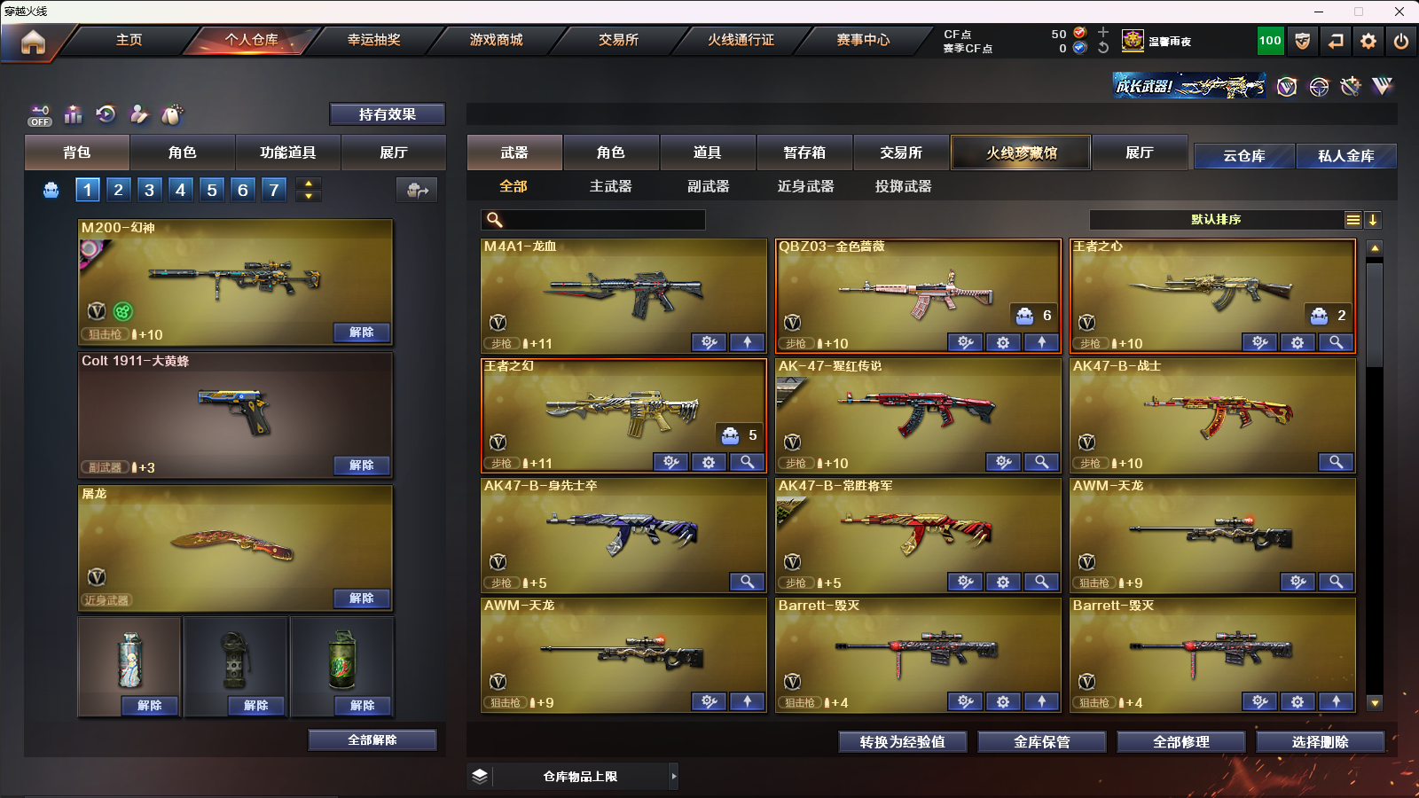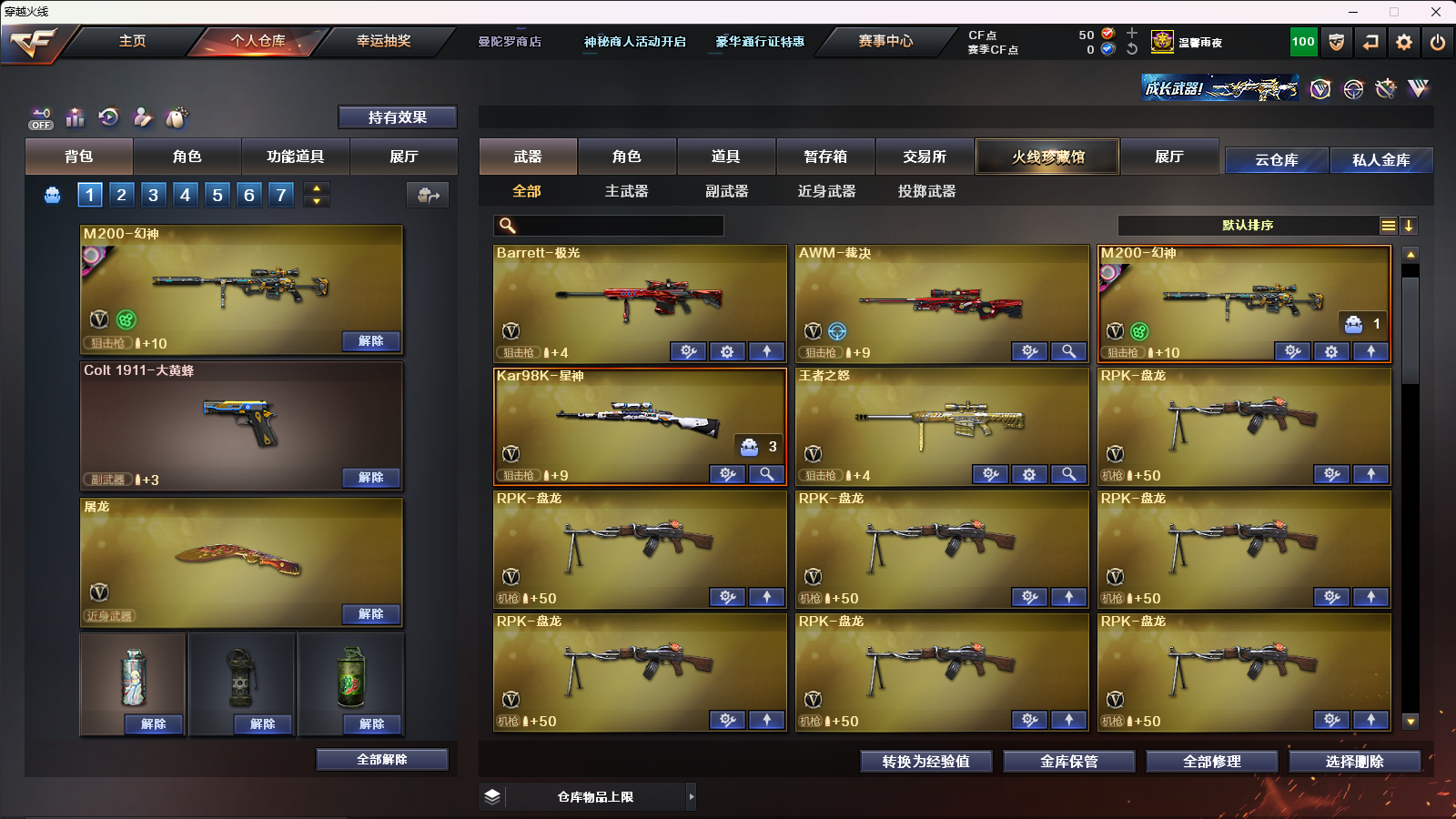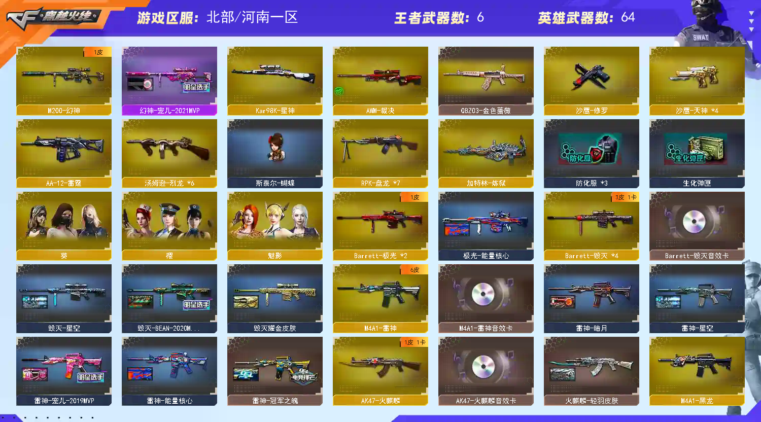 幻神➕双宠儿皮➕星神绿豆雷神宠儿轻羽➕7盘6烈四防角色;RPK-盘龙,QBZ03-金色蔷薇,M200-幻神,Kar98K-星神,
