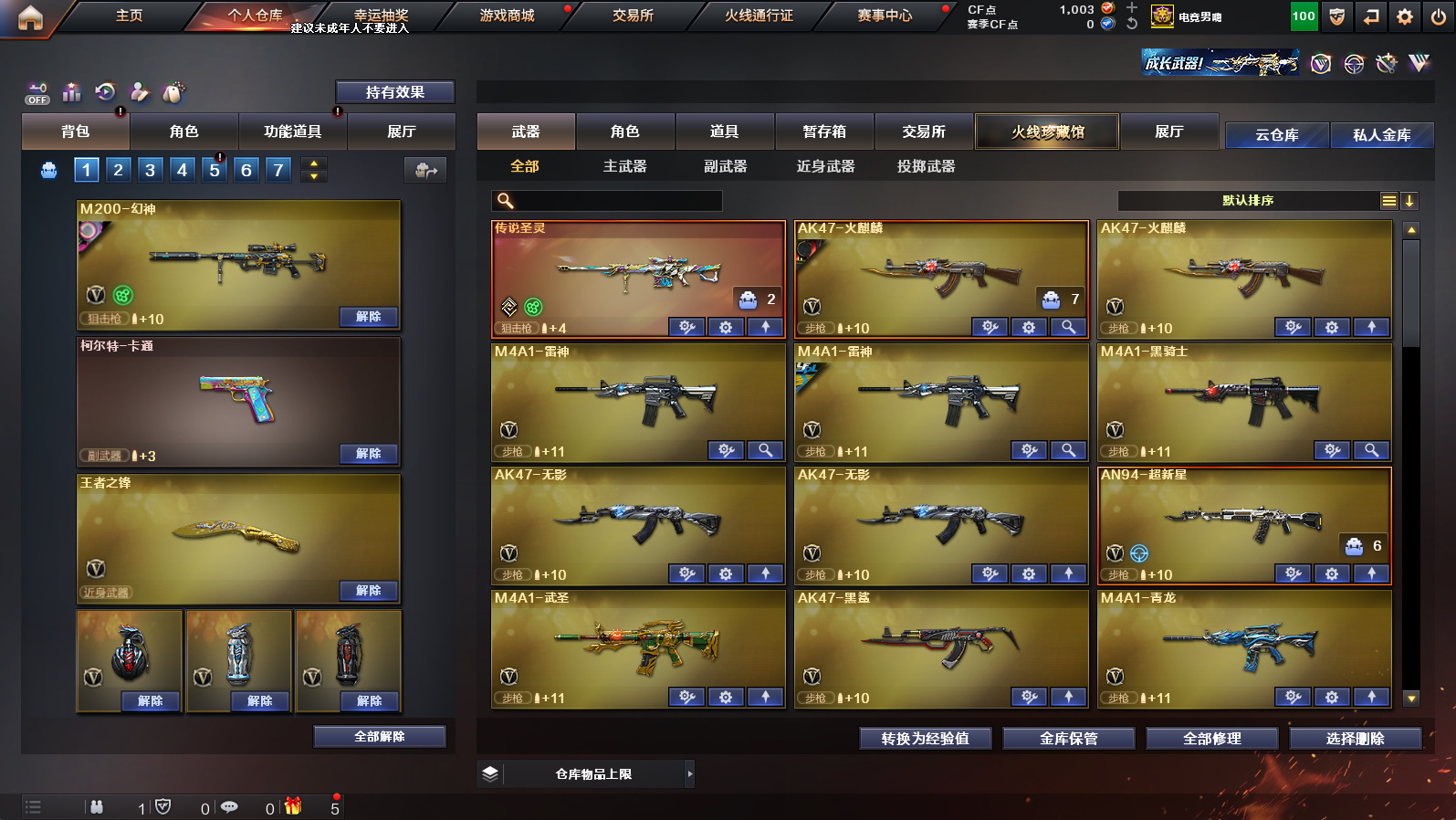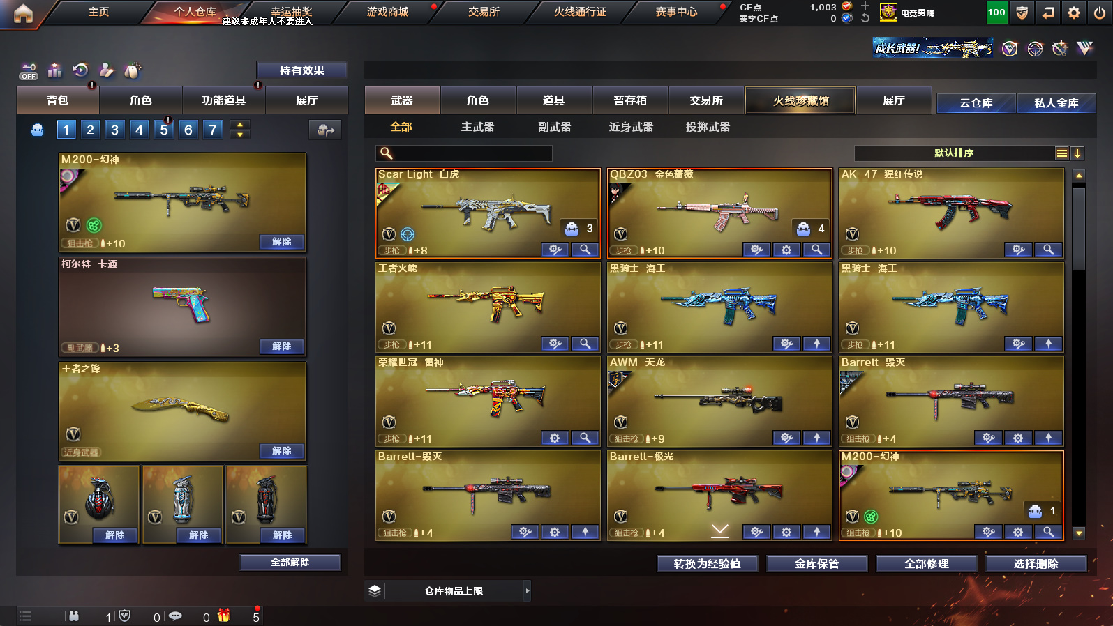 【幻神+幻神宠儿】世冠柯尔特【传说圣灵】【白虎 青龙 世冠雷神 王者火魄】【白虎ag冠军 火麒麟世冠ag 雷神世冠ag qbzag冠军图 雷神宠儿 火麒麟even 雷神荣耀之魄】【毁灭 雷神 黑骑士音效卡】【qbz金色蔷薇 火麒麟 雷神 毁灭】机甲撕裂者【天龙曼陀罗】【灵狐者职业经理】ac+工具包+手雷包永久有效;荣耀世冠-柯尔特,RPK-盘龙,QBZ03-金色蔷薇,M200-幻神,Scar Light-白虎,