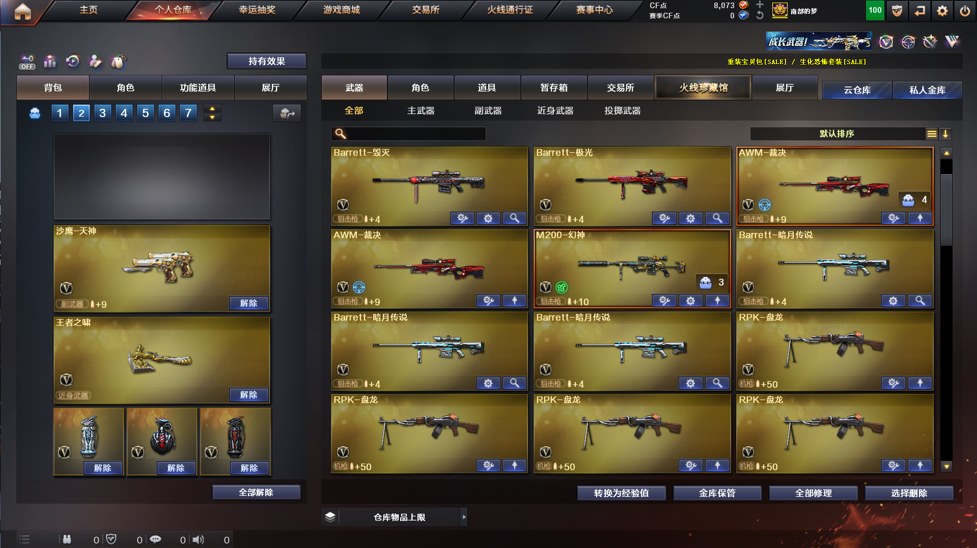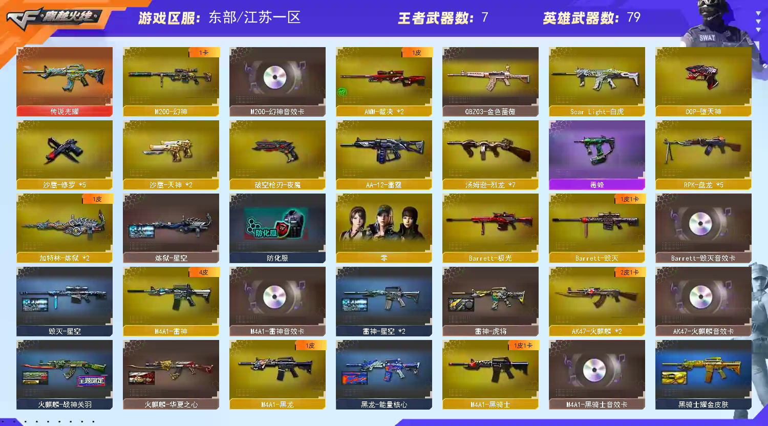 84v传说光耀+幻神音效卡+白虎+朱雀蔷薇夜魔裁决堕天神cop+5盘2炼6烈龙5修5音效卡;RPK-盘龙,QBZ03-金色蔷薇,M200-幻神,Scar Light-白虎,