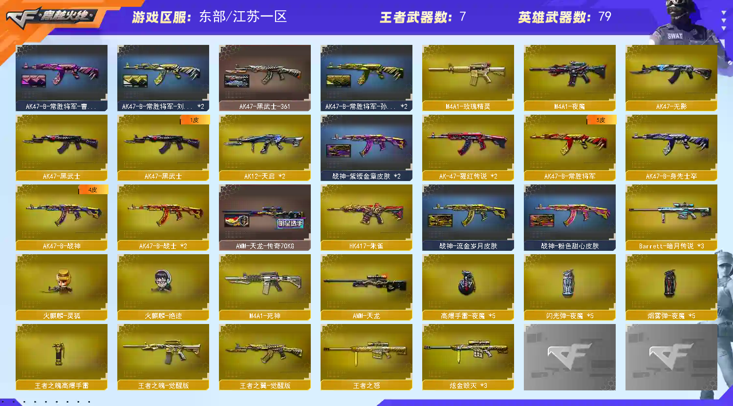 • 游戏区服:穿越火线 / 电信区 / 江苏一区