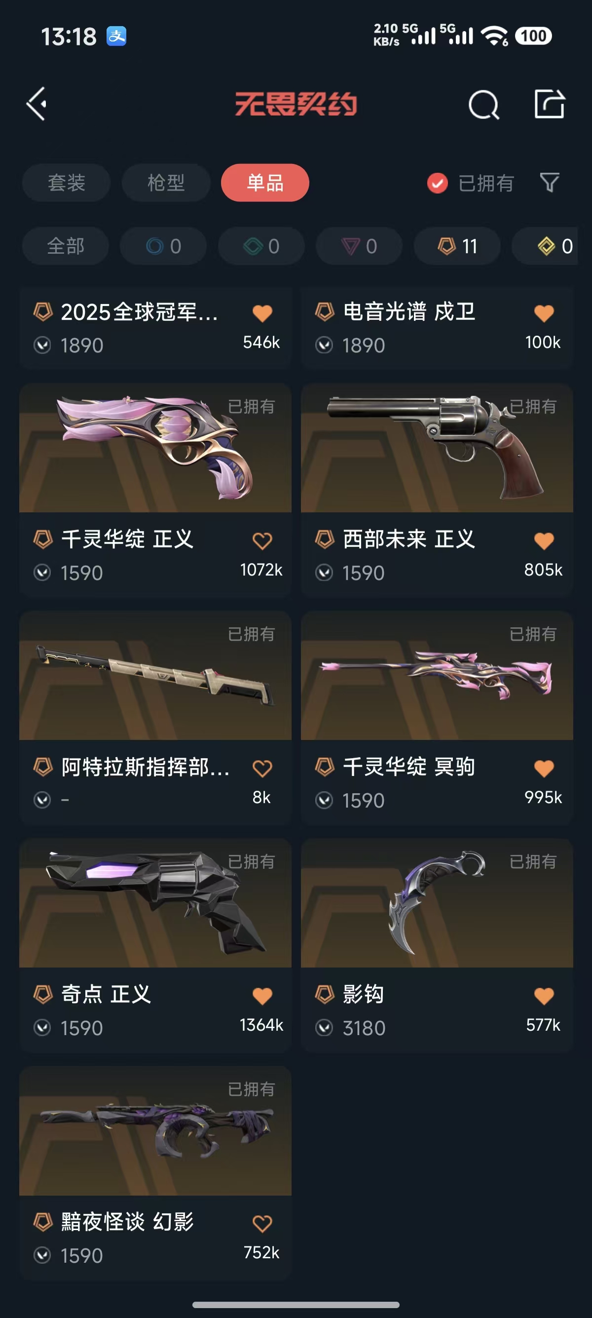25冠军狂徒✨影钩✨剥皮小刀✨掠影狂徒✨电音戍卫✨古神 掠影2.0幻影✨西部 奇点 掠影 千灵正义