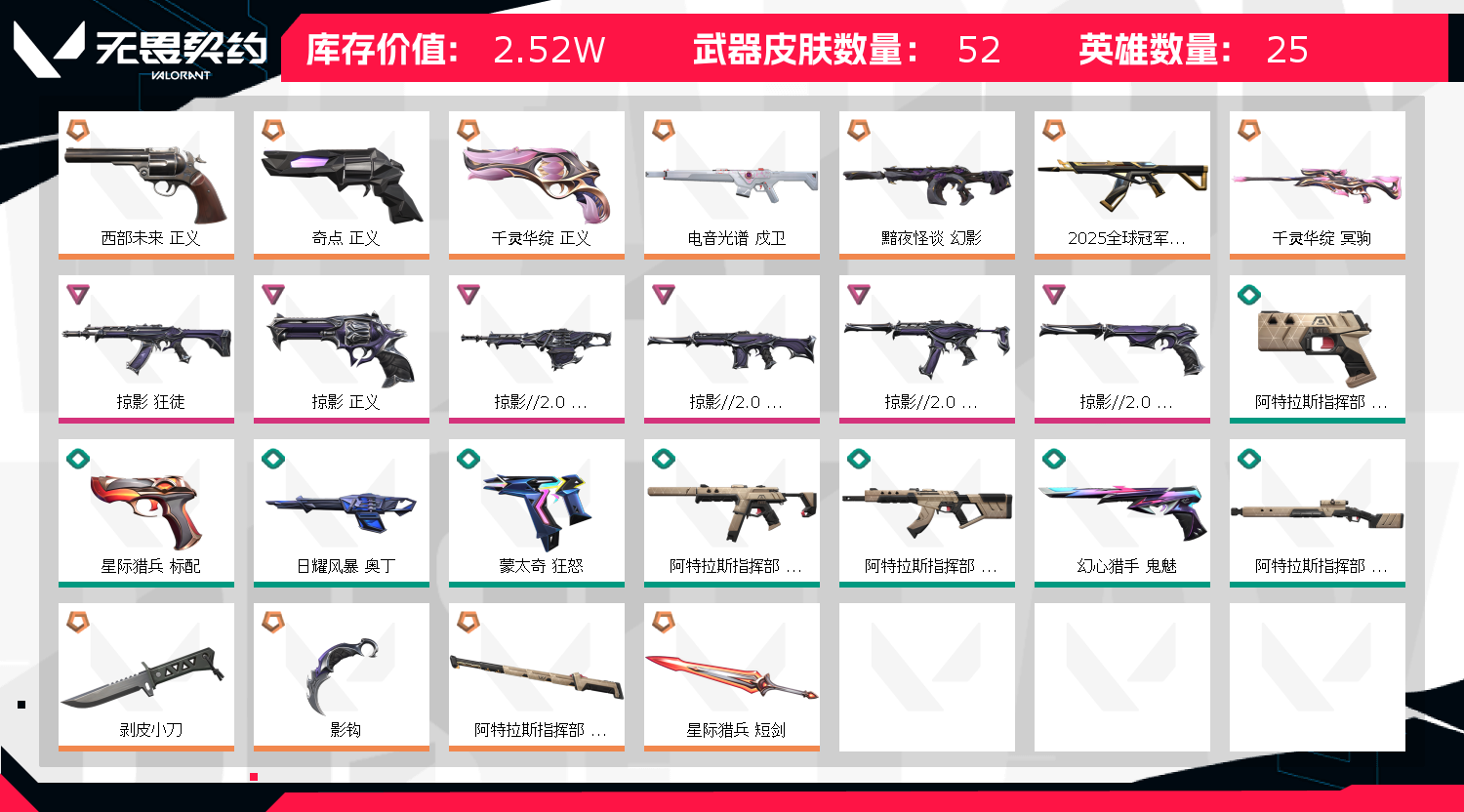 • 皮肤资产价值: 25230