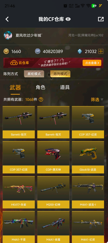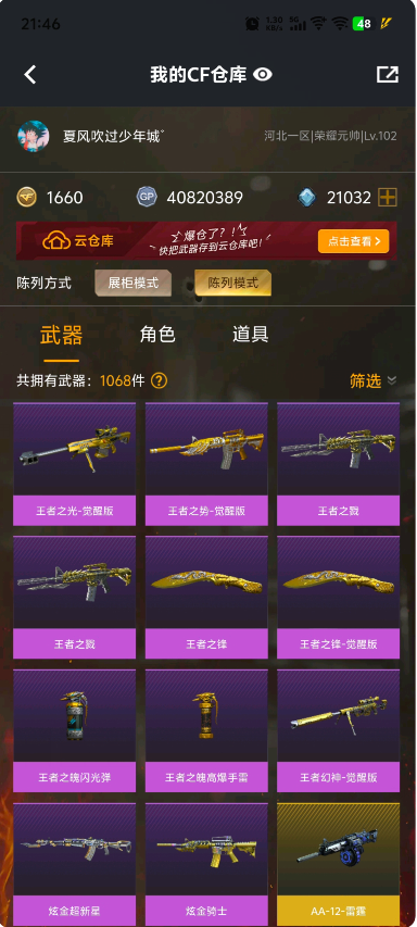 121V 幻神 王者幻神觉醒版 王者之光觉醒版 王者之锋觉醒版 毁灭星空 耀金皮肤音效卡 黑骑士音效卡 炫金94 炫金骑士 幻灵套 夜魔套 可以排位;QBZ03-金色蔷薇,M200-幻神,