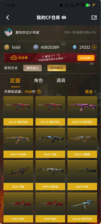 • 游戏区服:穿越火线 / 网通区 / 河北一区