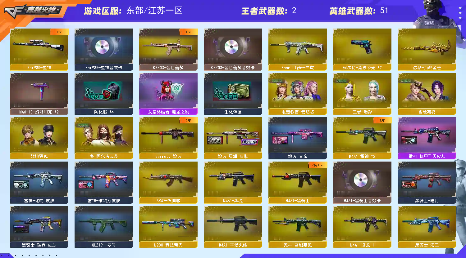 东部❤【竞技荣光套+四防云悠悠】 【98k-星神+音效卡】 【Scar白虎】 【QBZ蔷薇+音效卡】