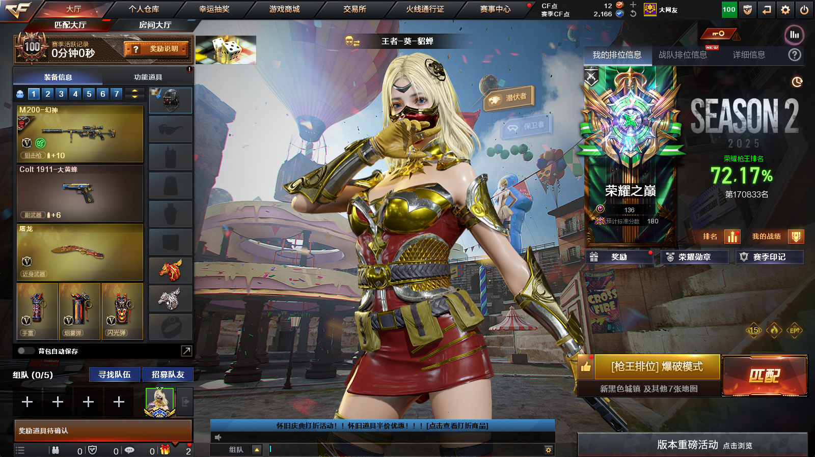 《m200幻神+幻神n9》《cop堕天神 1911大黄蜂》《王者火魄》《qbz王者蔷薇》《qbz金色蔷薇》《王者之心》《毁灭》《火麒麟》《雷神》《黑骑士》《黑武士》《黑龙》《毁灭征服者超越max》《金刚伞》《奇洋探员 乔伊教练满配 4防王者葵貂蝉 王者涂鸦》《bs战队炫彩背包 超级背包》《黑龙音效卡 黑骑士音效卡 碧霄极光音效卡 火麒麟音效卡 毁灭音效卡》《黑骑士白马银呛 雷神烈虎 黑骑士伏羲》a背包套装扩展券《永久ac 永久工具钳 永久手雷包》;QBZ03-金色蔷薇,M200-幻神,
