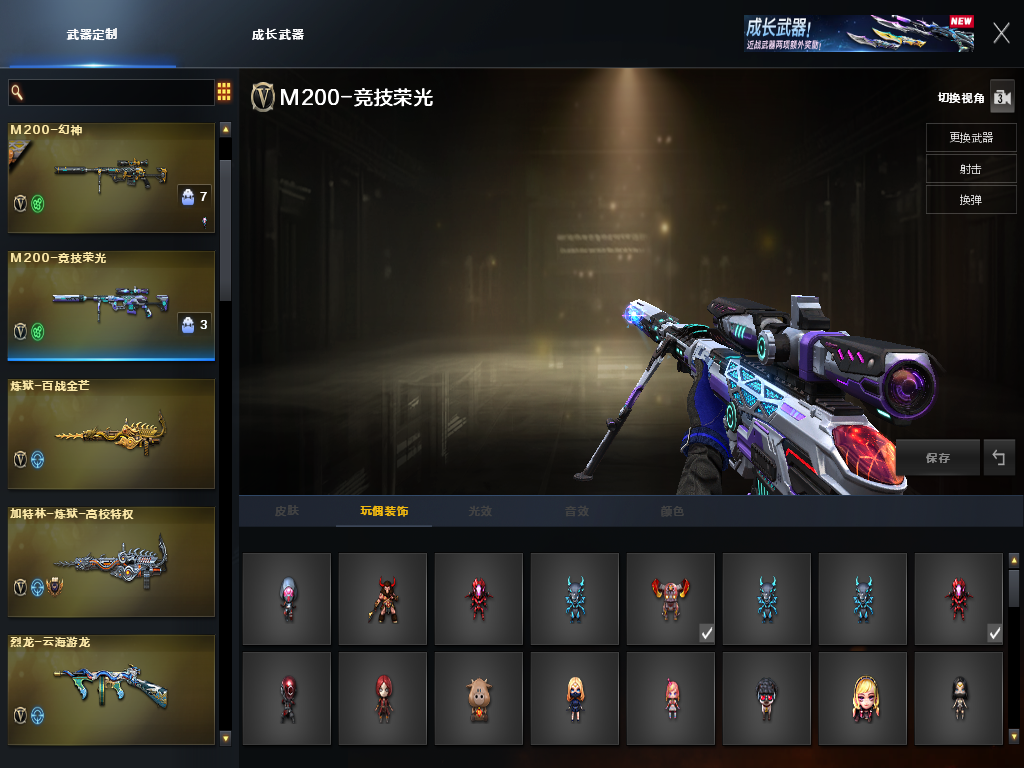 77V/幻神黄忠皮/M200竞技荣光/白虎蓝兔青龙USP雷暴柯尔特/骚悠悠四防/⑧高爆竞技荣光投掷/