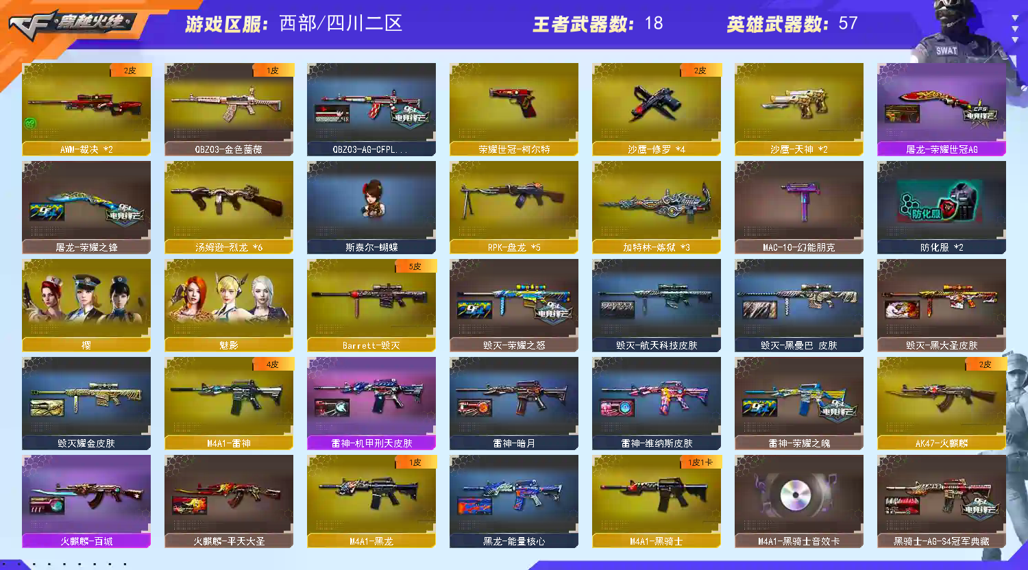 • 游戏区服:穿越火线 / 电信区 / 四川二区