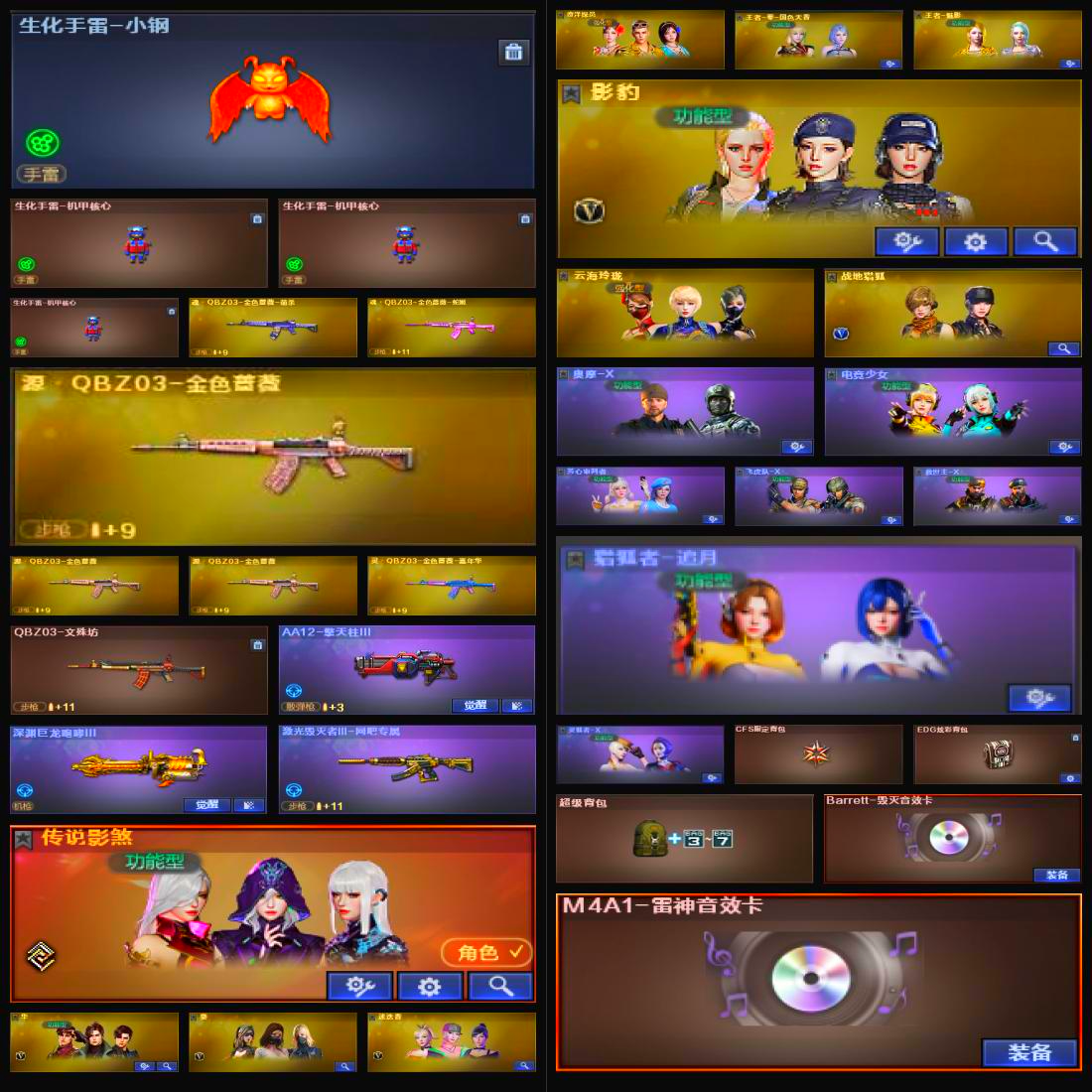 【亮点解析 哔哩哔哩名片 生化六烈+蝴蝶+蝴蝶刀+四防影煞】【传说影煞】【传说灵眸】【M200-幻神+幻神-冠军之幻+幻神-荣耀世冠白鲨+幻神-黄忠】【王者星霆】【传说暗裔】【ScarLight-白虎】【QBZ03-金色蔷薇+巅峰荣耀】【生化 6炼狱 6烈龙 蝴蝶 蝴蝶刀】【挑战 擎天柱】【裁决】【毁灭+音效卡+毁灭-冠军之怒】【雷暴套】【幻灵套】【火麒麟+火麒麟-横秒之巅】【麒麟】【黑龙+黑龙-冠军之武】【雷神+音效卡+巅峰荣耀+雷神-lgd18冠军】【黑骑士】【王者之心 王者之翼 王者之势 王者冰魄】【超新星 黑鲨】【8手枪 修罗*3 天神 usp雷暴 cop幻灵 cop云龙】【13近战 Knife-冠军之刃 屠龙*3 龙啸*2 擎天 麒麟刺 斩神刀雷暴 幻灵之锋 炽芒蝶刃蝴蝶刀】【手雷 雷暴雷*5 幻灵雷*2 云龙雷】【四防 影豹 王者零国色天香 王者魅影】;