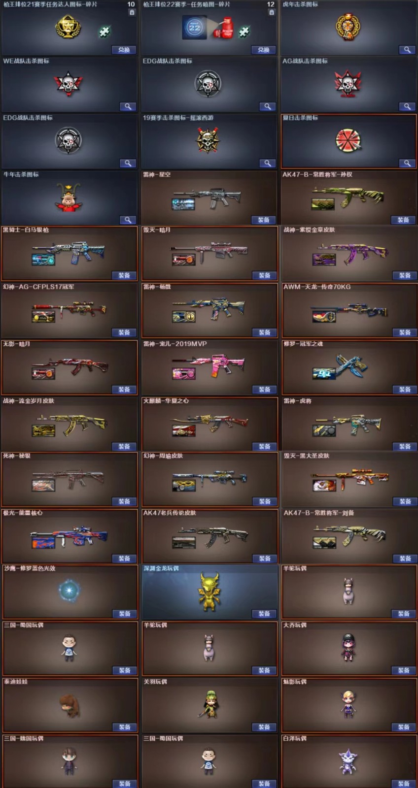 幻神+AG冠军周瑜+幻音+usp雷暴+传说光耀+星神+白虎+朱雀+王者蔷薇+竞技套6盘6烈斯太尔蝴蝶