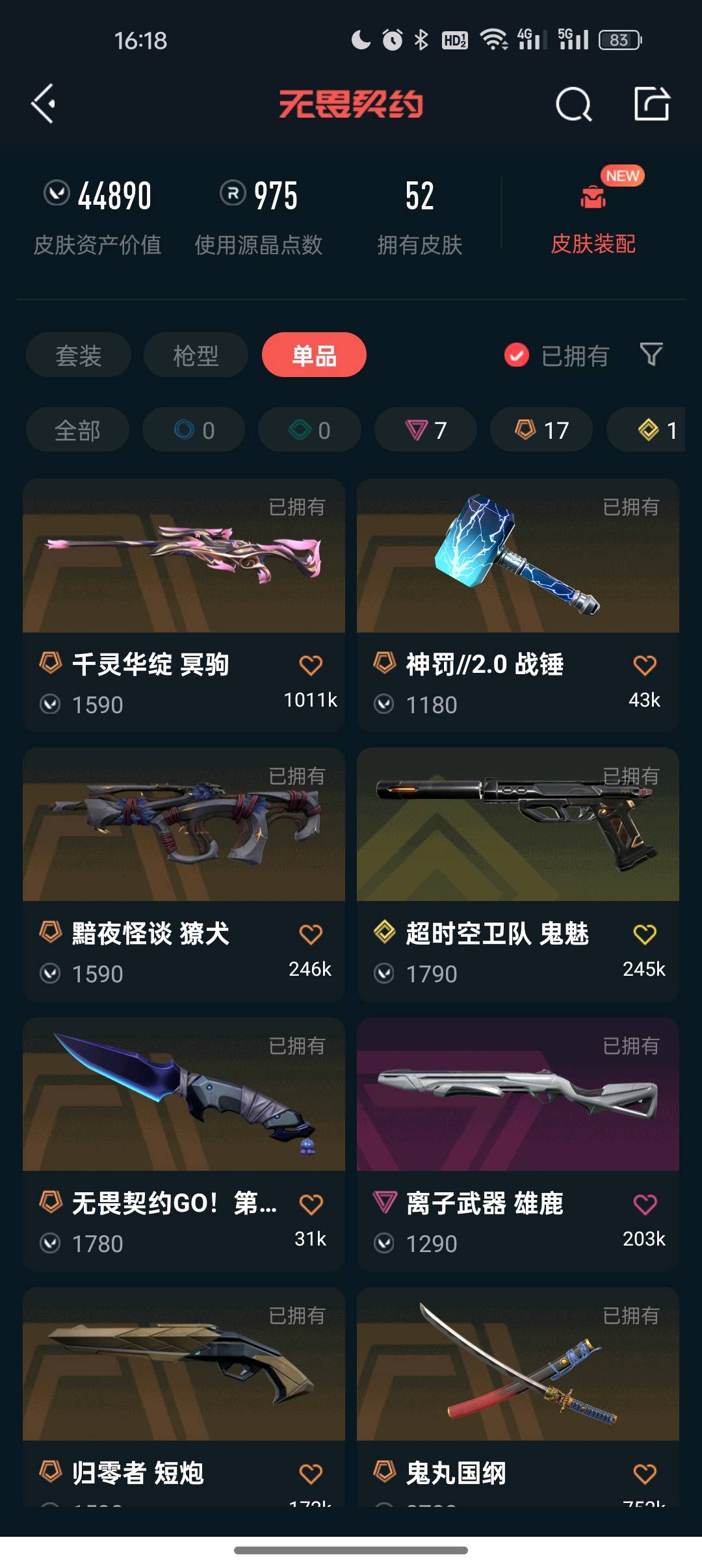 • 皮肤资产价值: 44890