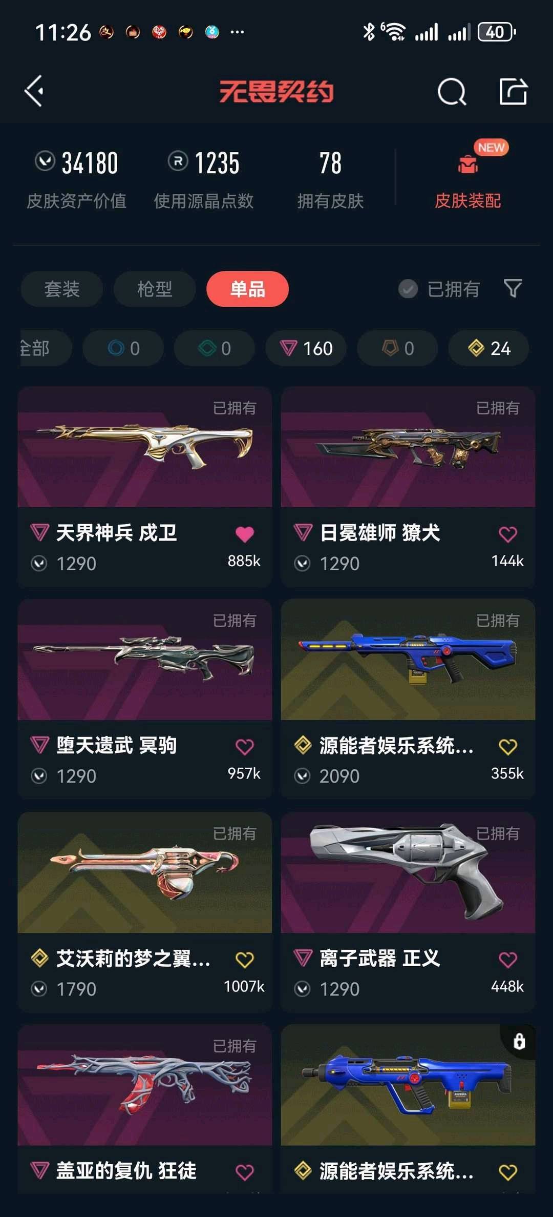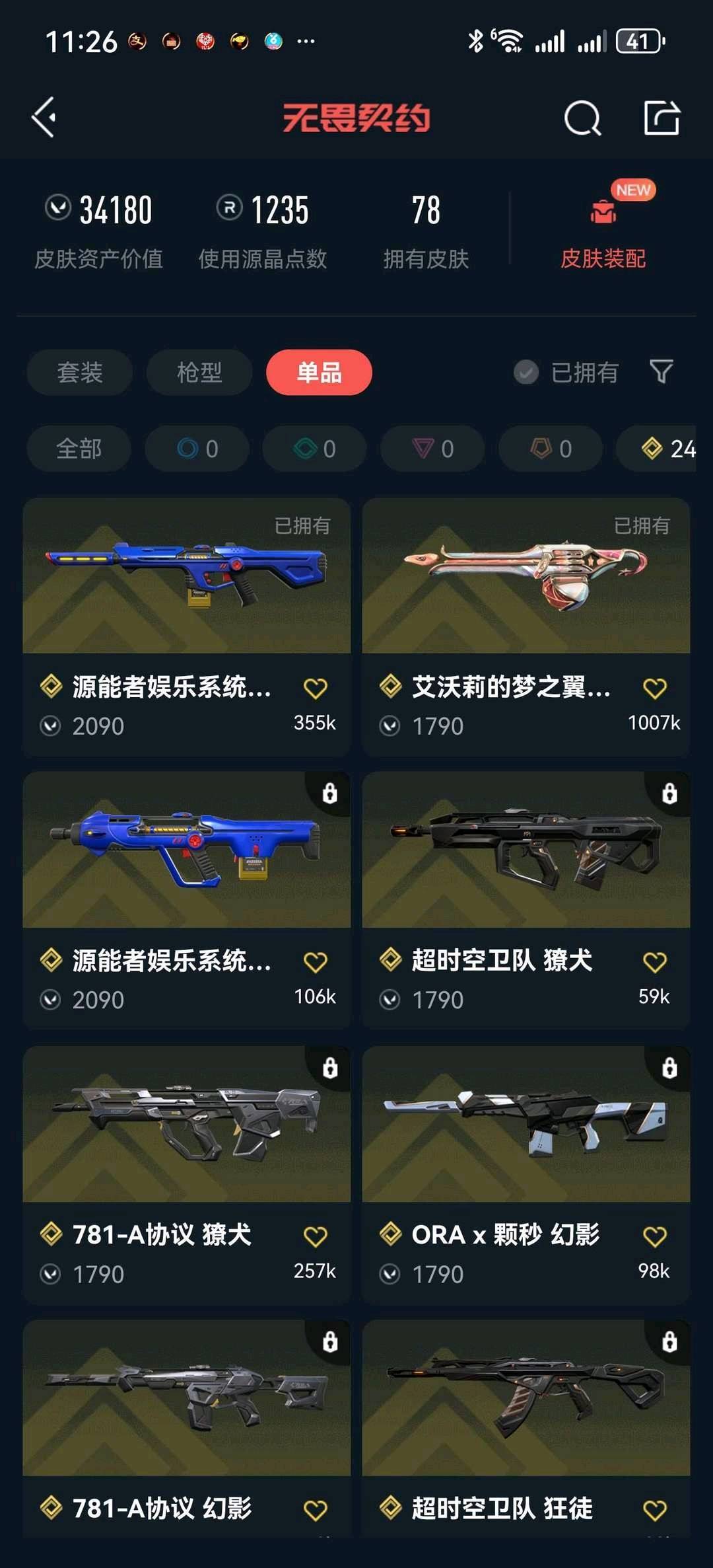 • 皮肤资产价值: 34180