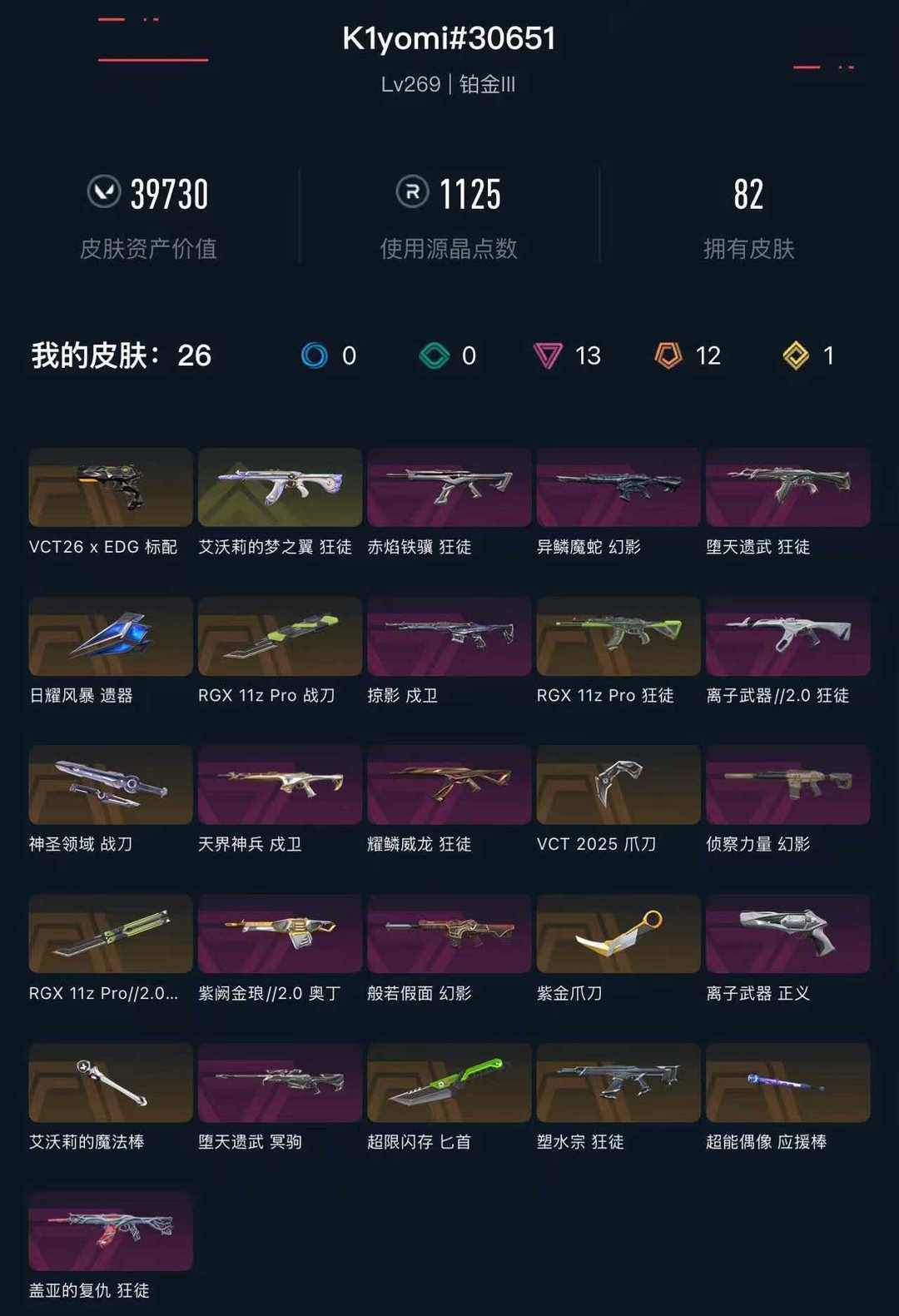 • 游戏区服:无畏契约-wegame / wegame / wegame