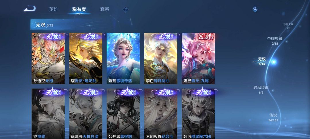 【非沄直接上号】极品V10★三历史国标★430皮★六典藏★诸葛亮新典藏★虎年五限定★鸣剑戈影★活力突击️★多限定
