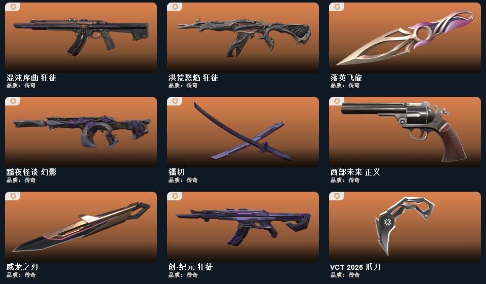 wegame无畏契约★ 刀皮数量13,枪皮数量114(绝版2限定33终极4卓越10);皮肤资产价值76720,已用R点1360;【刀皮】:近战武器-VCT2025爪刀,近战武器-超限闪存匕首,近战武器-夜刃诡镰,近战武器-威龙之刃,近战武器-个人近战单位,近战武器-钢轨卫士战锤,近战武器-珍珠棘贝短剑,近战武器-落英飞旋,近战武器-荒土机兵热能刀,近战武器-诡秘蛇影军刀,近战武器-神圣领域战刀,近战武器-镭切,近战武器-