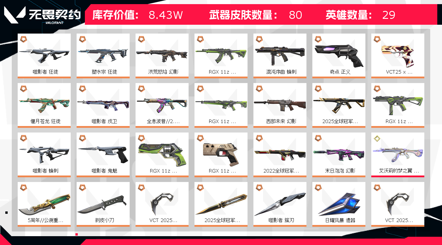 • 皮肤资产价值: 84290
