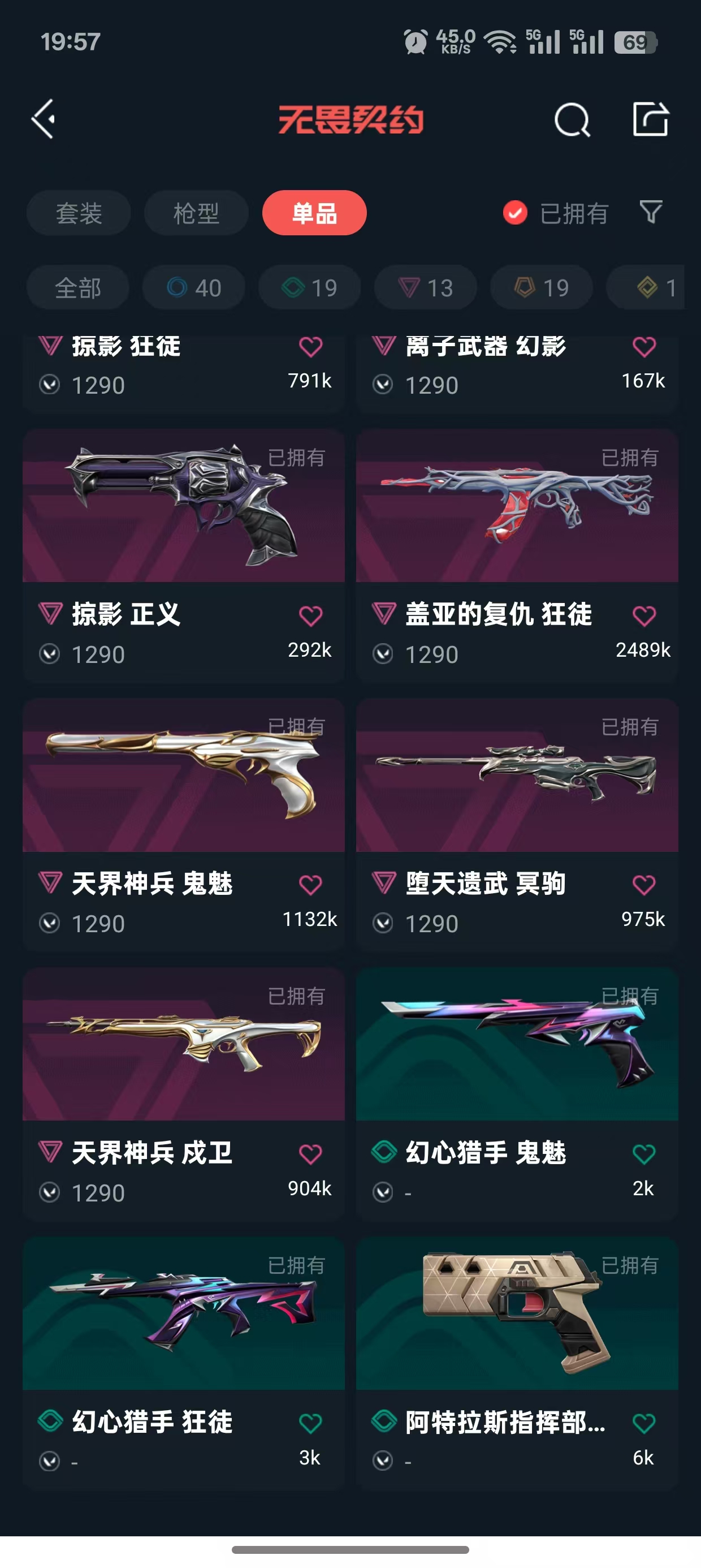 • 传奇数量: 19