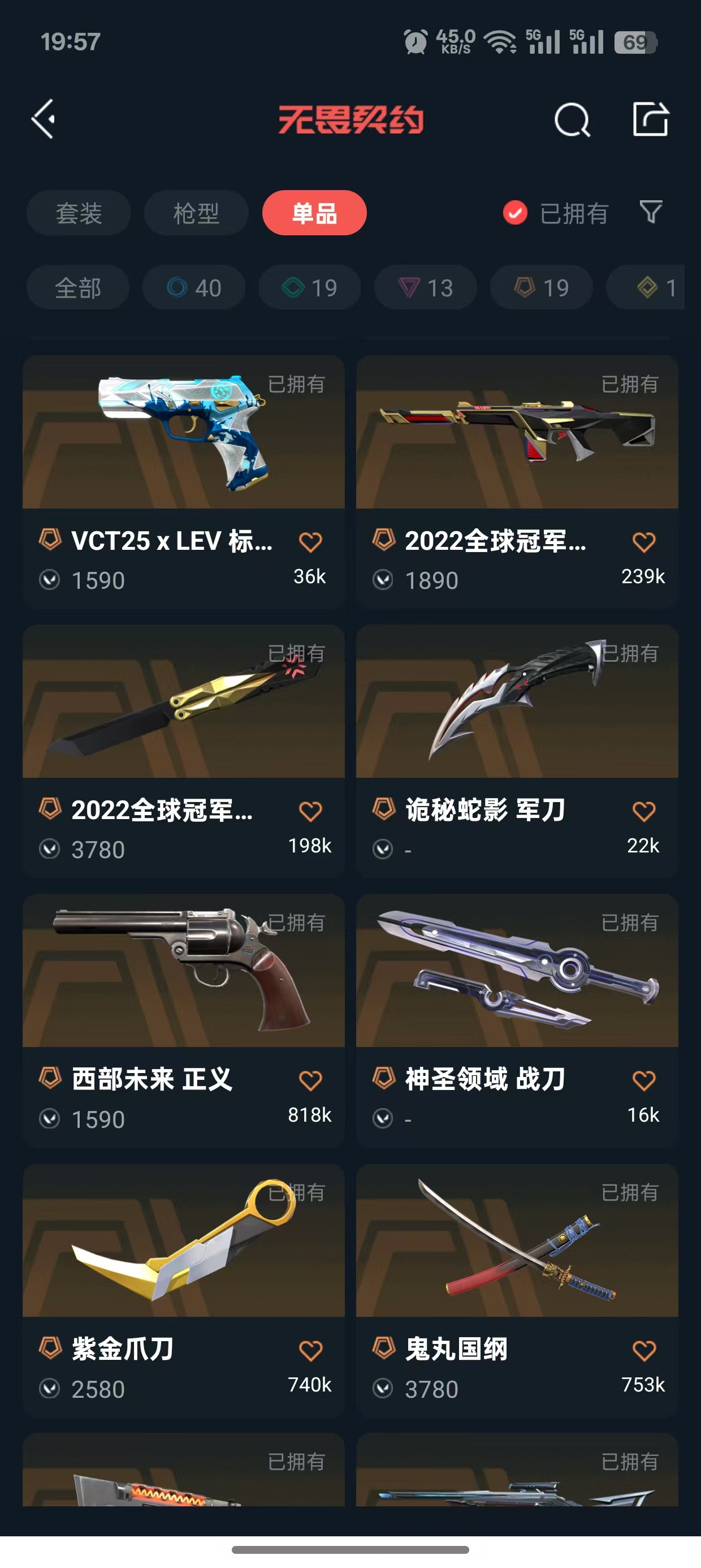 冻结秒解✨5W库存✨掠影2.0套✨22冠军套✨黑波之刃✨鬼丸国纲✨夜刃诡镰✨盖亚的复仇 狂徒