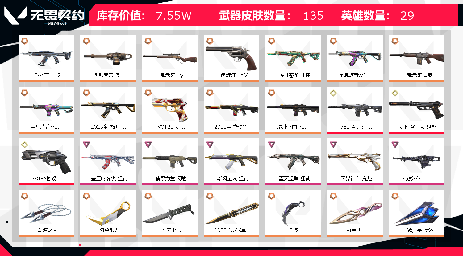 首页 > 租号大厅 > 无畏契约-wegame > wegame/wegame > 精氪2522冠军套❤️精选16刀25冠军奇点蝴蝶刀影钩紫金剥皮刀❤️盖亚侦察混沌全息20塑水紫阙西部
