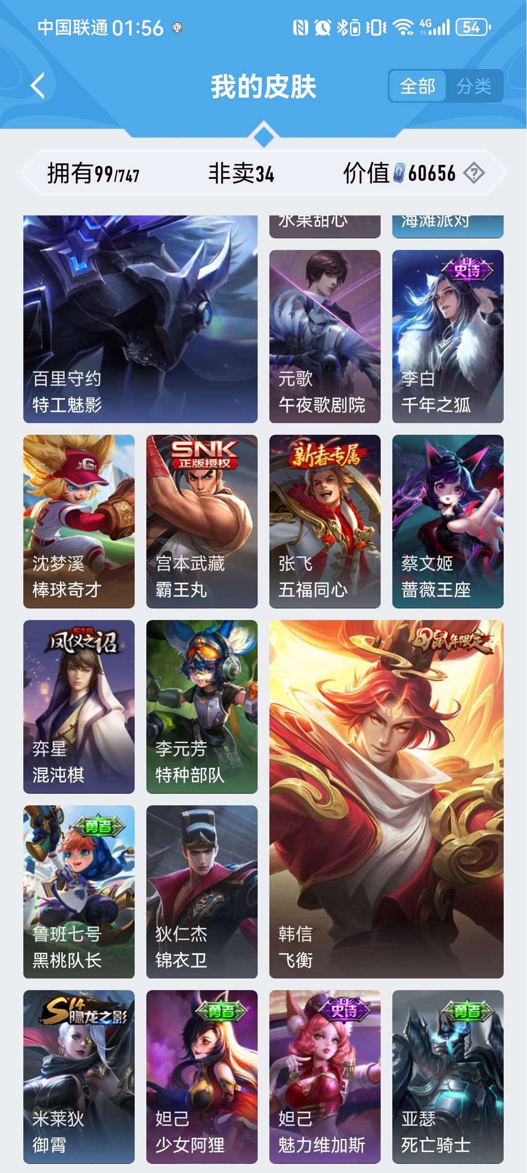 【非云直上】V10★皮肤榜一★539皮满典藏★鲁班时之奇旅会员★虞姬黛羽霜翎星元★吕布白金战神★全能大师★多金标★个性按键