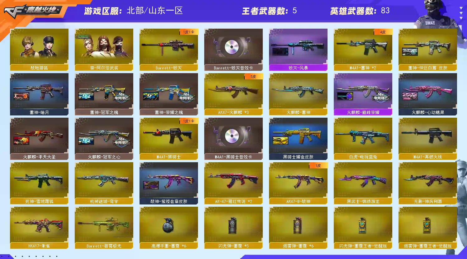 • 游戏区服:穿越火线 / 北部 / 山东一区