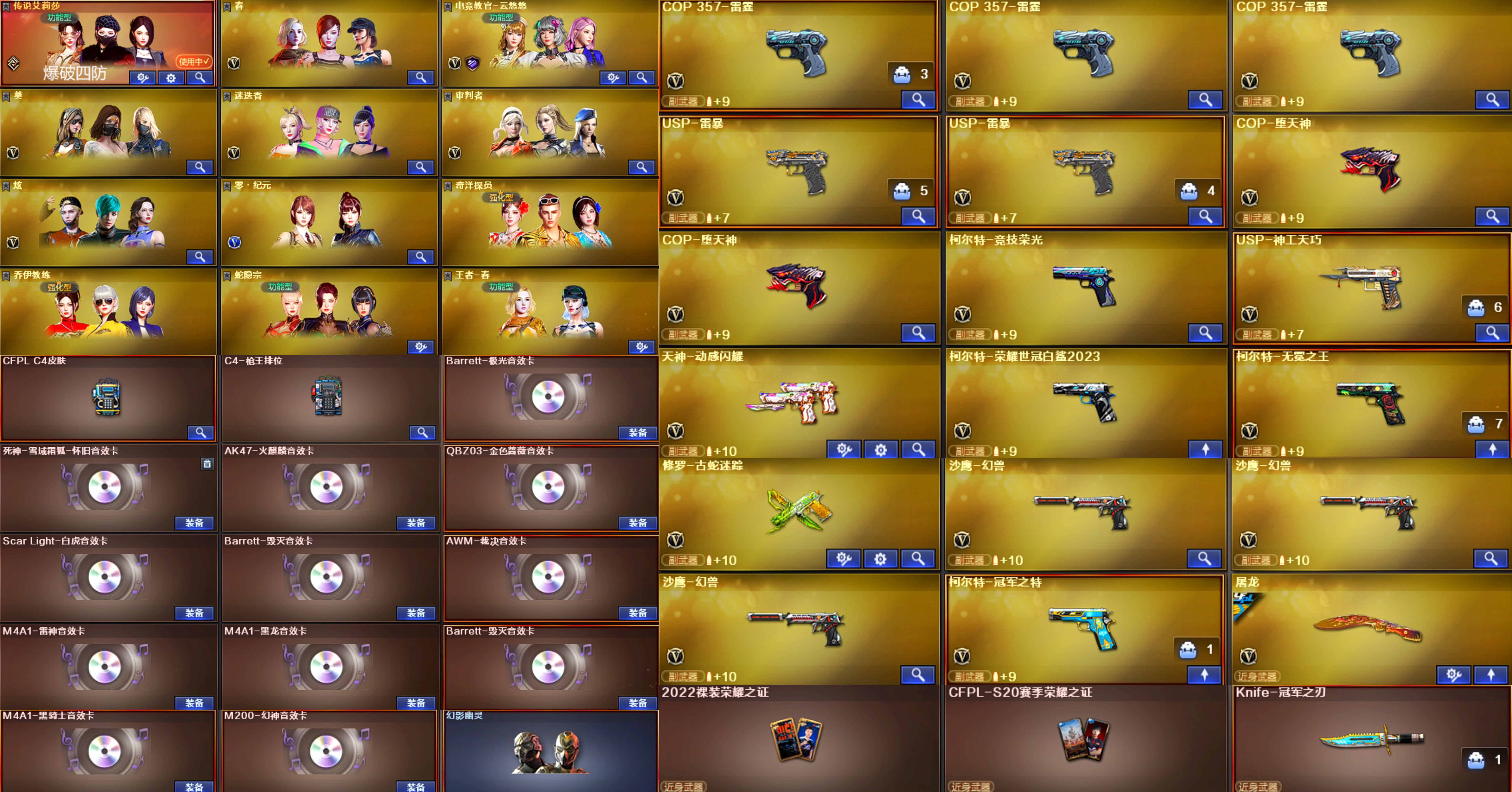 封号必究!!!开挂属违法行为!!! 切勿存在侥幸心理害人害己!!! 【北部北方大区】【传说艾莉莎 传说暗裔】【三幻神星火小队 白鲨2023 宠儿 n9 CFS2022 周瑜 白鲨7皮三件套 竞技荣光 王者风神 星神璀璨枪娘默2皮 王者星霆 裁决巅峰荣耀4皮三件套 王者之决】【G36C幻影 白虎白鲨霓虹机甲大汉风骨热带奇洋4皮三件套 白虎之魄 电玩蓝兔白虎 qbzAG白鲨枪娘3皮三件套】【极光三件套 毁灭冠军之怒荣耀之怒SV直播专属三件套 雷神荣耀之魄白鲨 火麒麟冠军之心巅峰荣耀 屠龙荣耀之锋星火燎原 黑骑士地狱火】【六盘龙 二炼狱 六烈龙斯泰尔蝴蝶毒蜂双面神 炽芒蝶刃蝴蝶刀白鲨皮肤 王者M200无畏金戈】【双USP雷暴 USP神工天巧 三COP雷霆 双COP堕天神 竞技荣光柯尔特 白鲨柯尔特 无冕之王柯尔特 冠军之特 冠军之刃 三沙鹰幻兽】【幻神音效卡 裁决音效卡 白虎音效卡 qbz音效卡 极光音效卡 毁灭音效卡 雷神音效卡 火麒麟音效卡 黑骑士音效卡 黑龙音效卡】【传说艾莉莎 春 云悠悠 葵 迷迭香 审判者 炫 王者春 王者魅影 王者葵貂蝉 王者瞳闭月羞花 王者零 职业选手 女主播】;USP-雷暴,柯尔特-无冕之王,柯尔特-荣耀世冠白鲨2023,柯尔特-冠军之特,炽芒蝶刃,Knife-冠军之刃,电竞教官-云悠悠,