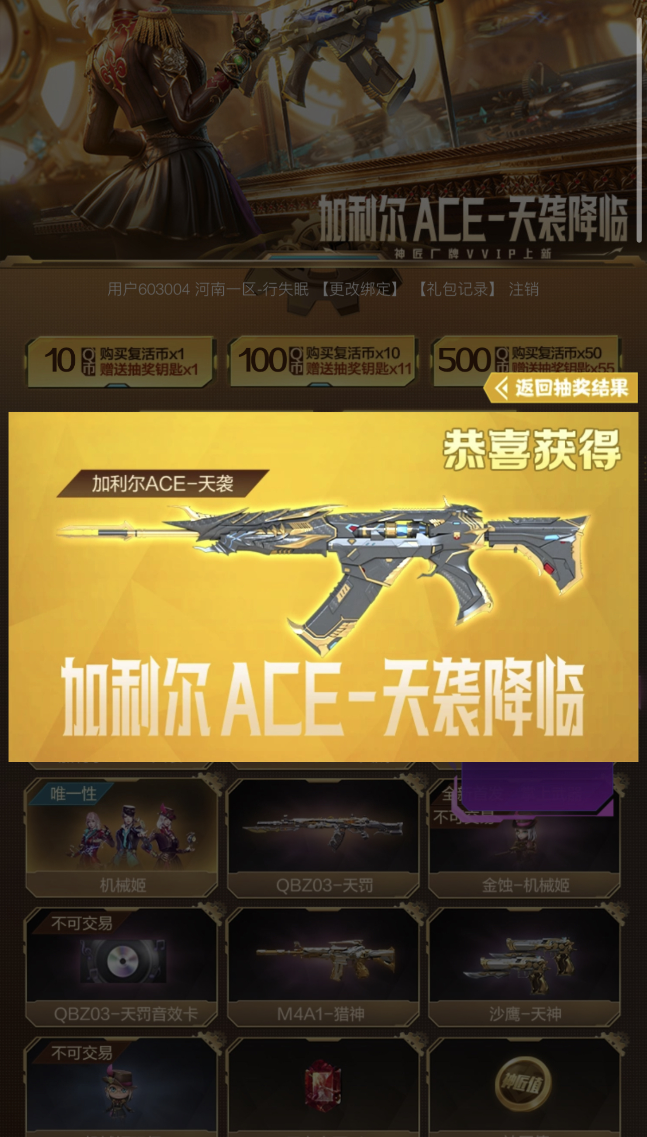 • 游戏区服:穿越火线 / 网通区 / 河南一区