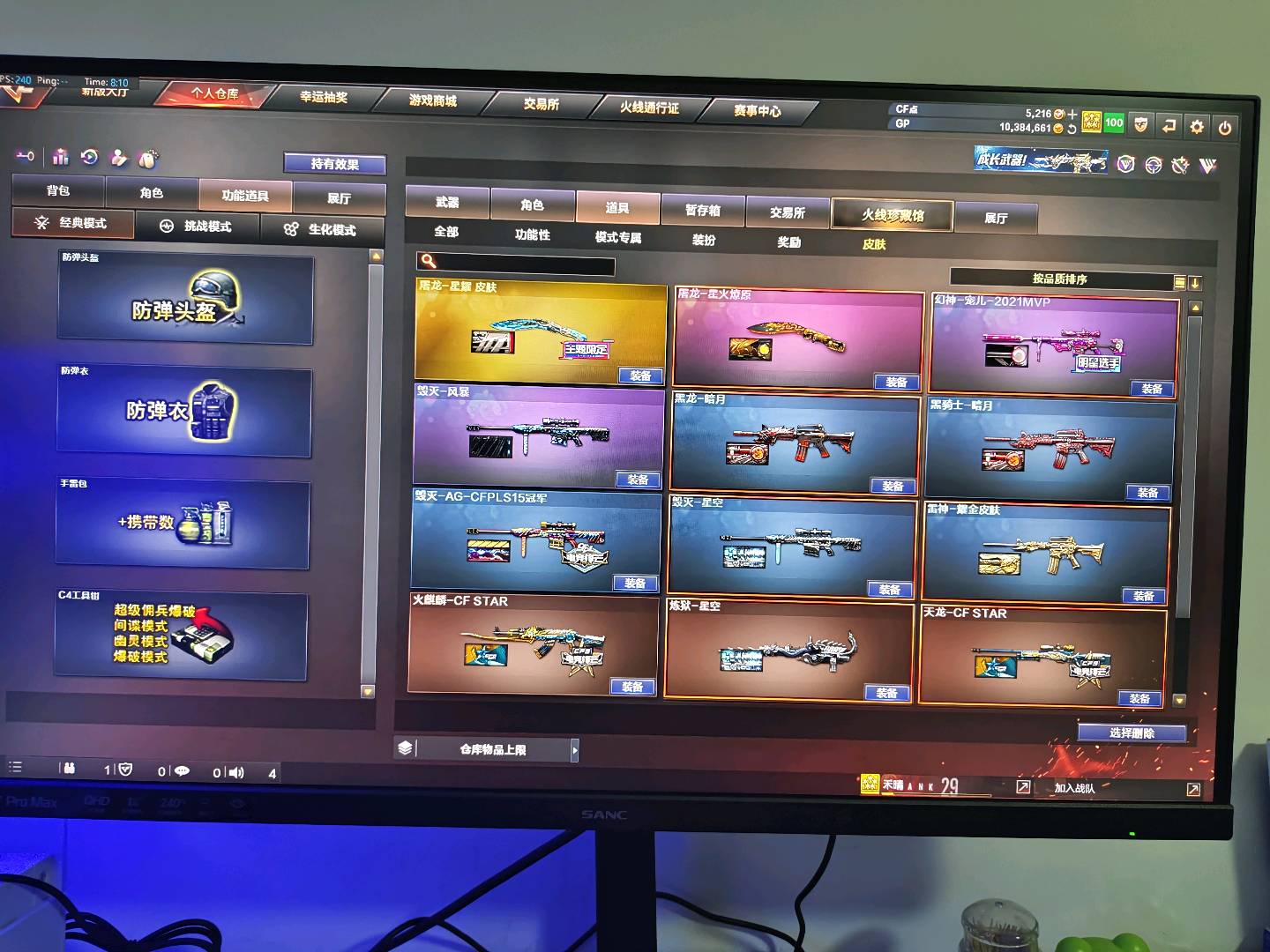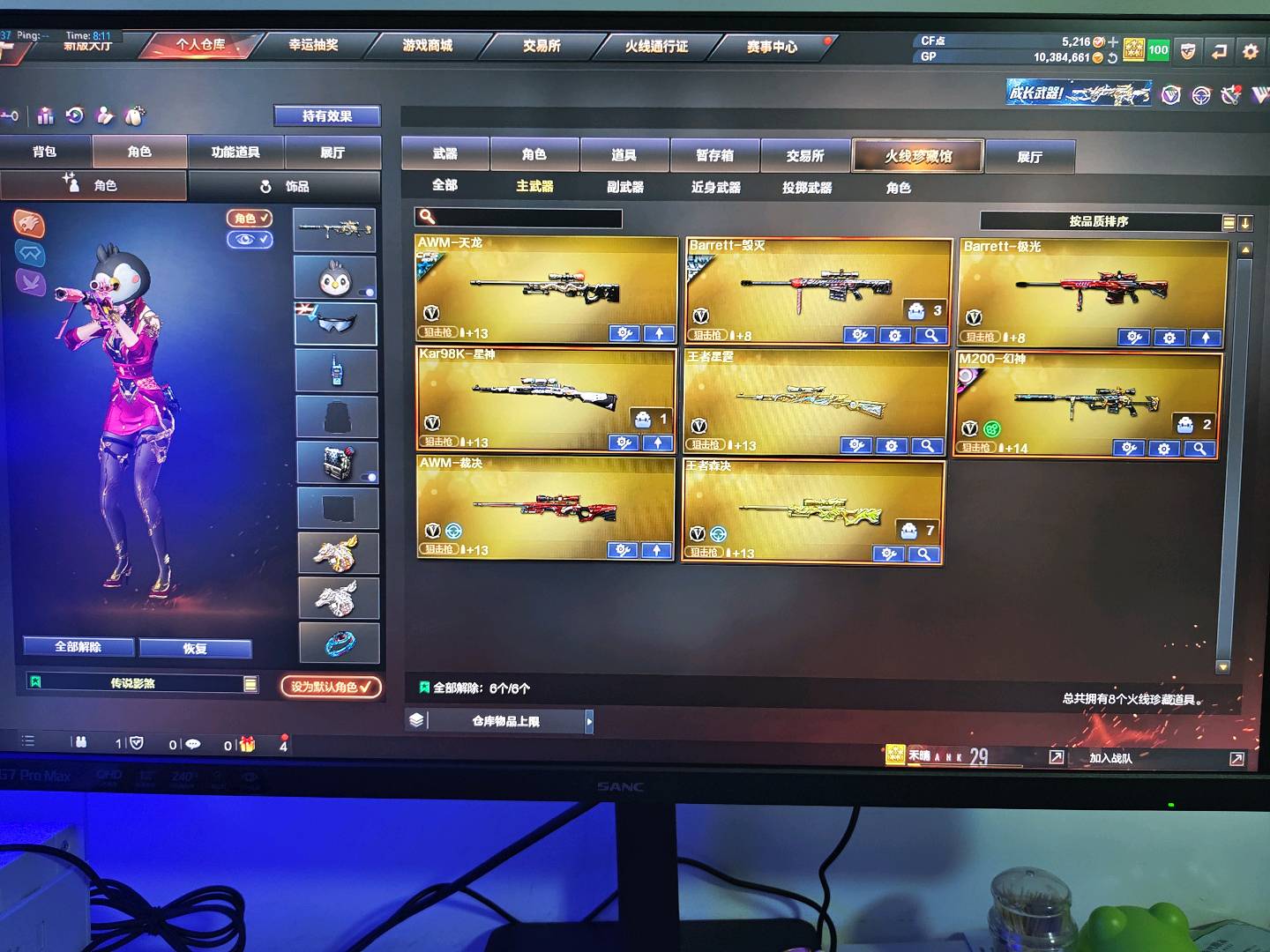 不允许使用外挂,违者追责已备案,此号充值上万。感谢您的使用。;USP-雷暴,炽芒蝶刃,传说影煞,RPK-盘龙,QBZ03-金色蔷薇,M200-幻神,Kar98K-星神,