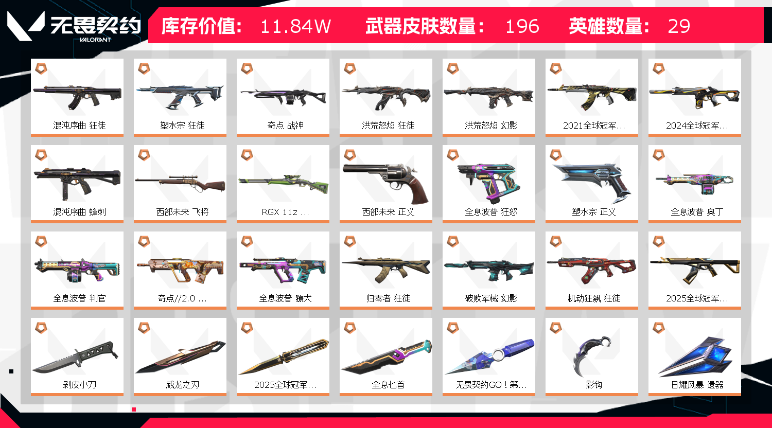 • 皮肤资产价值: 118430