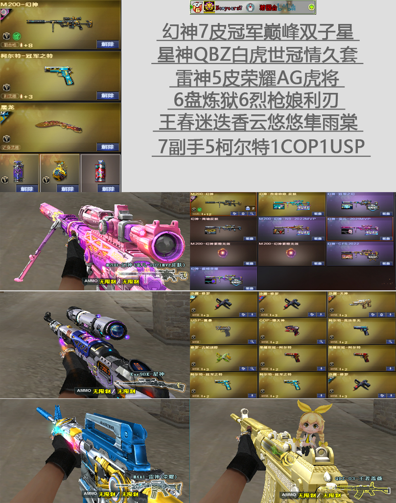 王者风神7皮巅峰冠军宠儿N9欧欧幻神星神白虎QBZ王者蔷薇荣耀雷神AG冠军之特雷暴堕天神6盘6烈枪娘