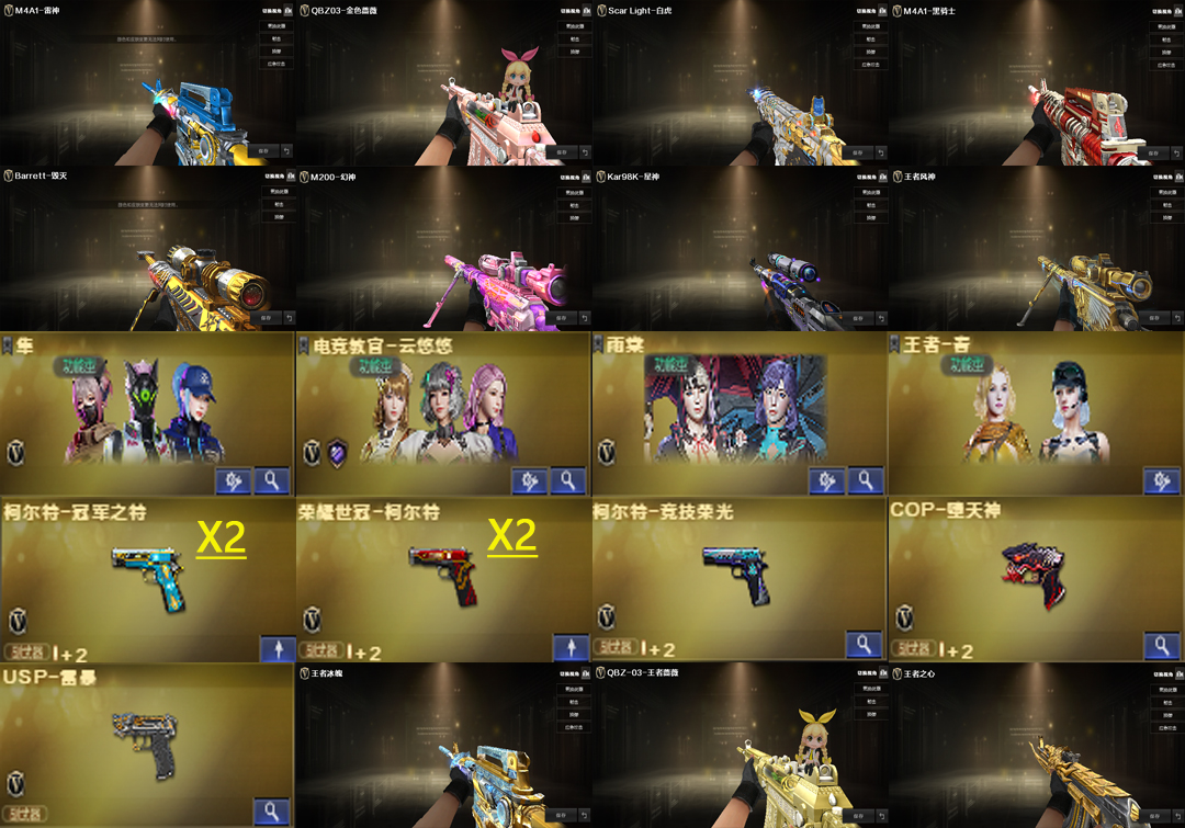 退排位拉黑;USP-雷暴,荣耀世冠-柯尔特,柯尔特-冠军之特,隼,电竞教官-云悠悠,RPK-盘龙,QBZ03-金色蔷薇,