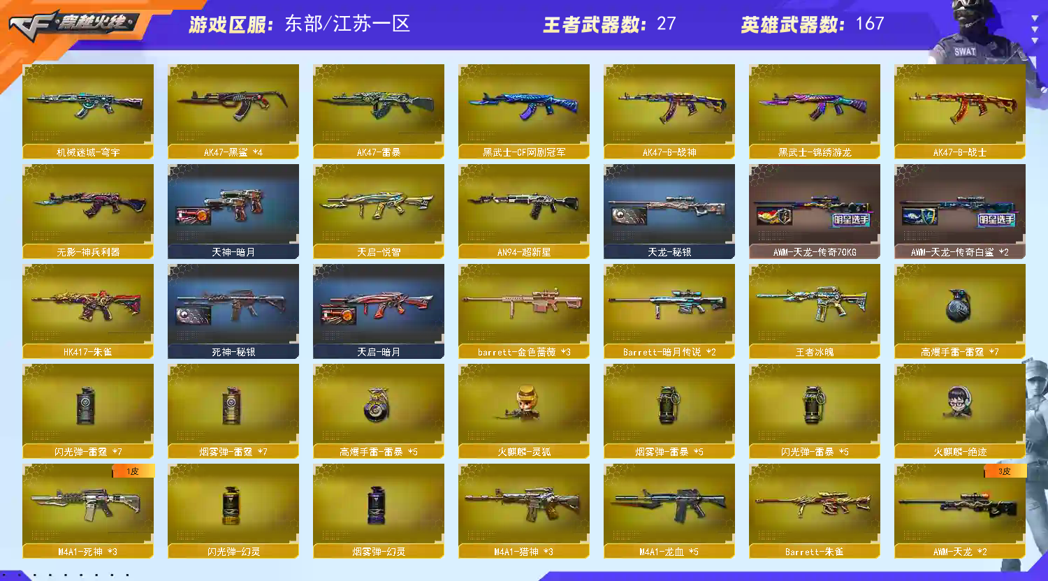 • 游戏区服:穿越火线 / 电信区 / 江苏一区