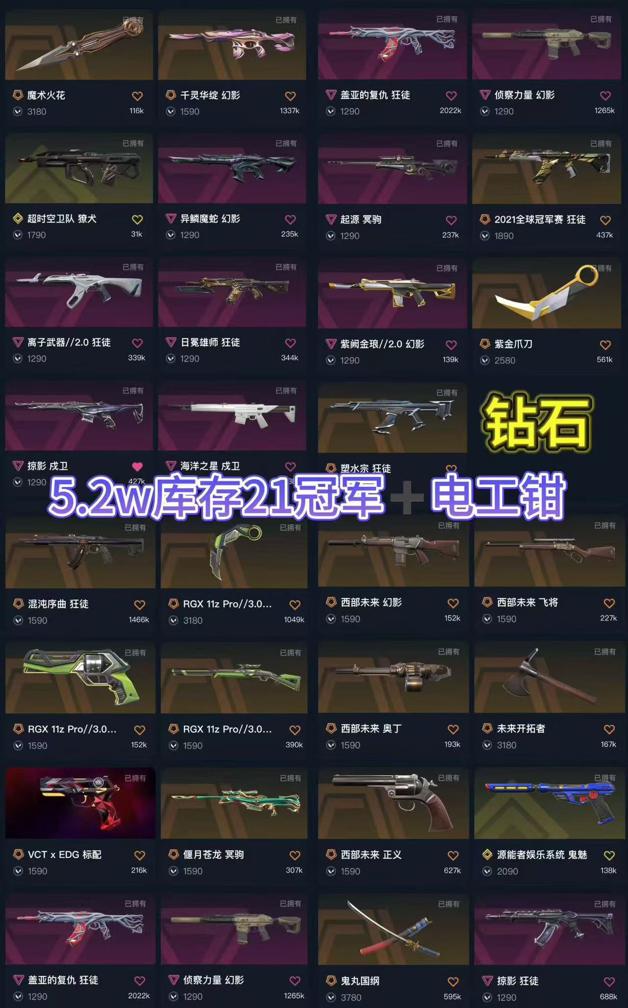 冻结秒解⚡6w库21冠军⚡紫金爪太刀电工钳⚡盖亚塑水离子狮子掠影混沌ak⚡侦察莲花西部m4;