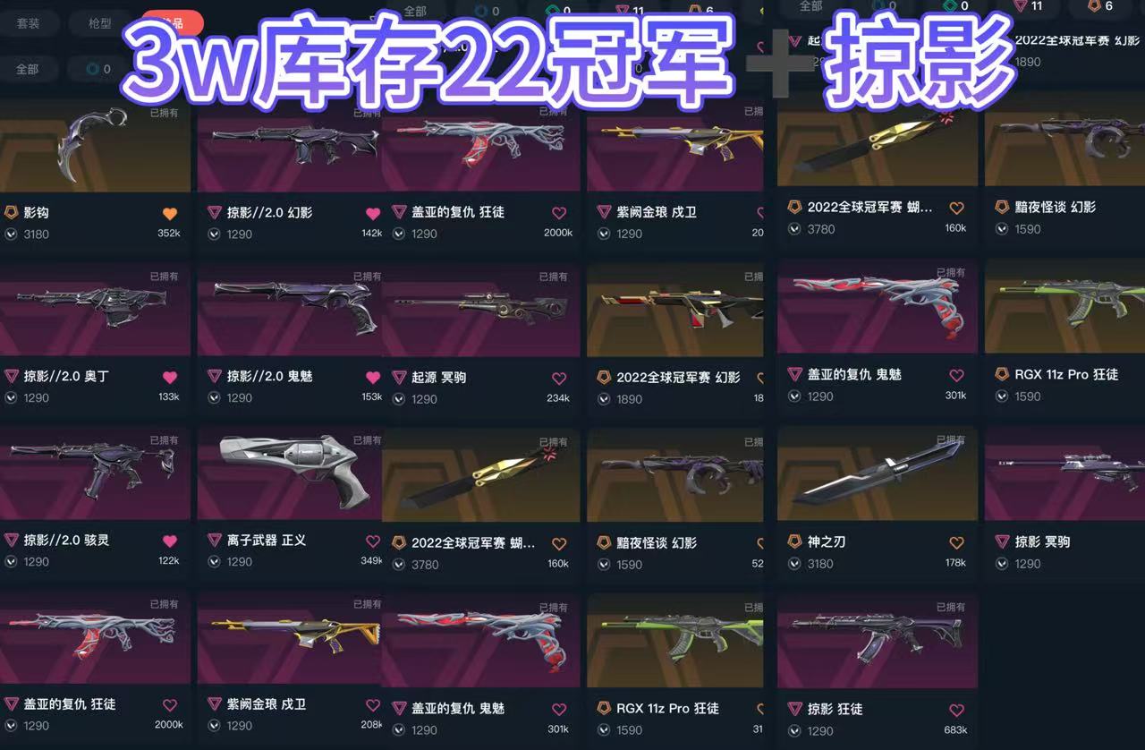 冻结秒解⚡4w 库存 25冠军套可排⚡VCT爪刀⚡22冠军刀⚡盖亚 塑水 超时空ak 显卡 离子;