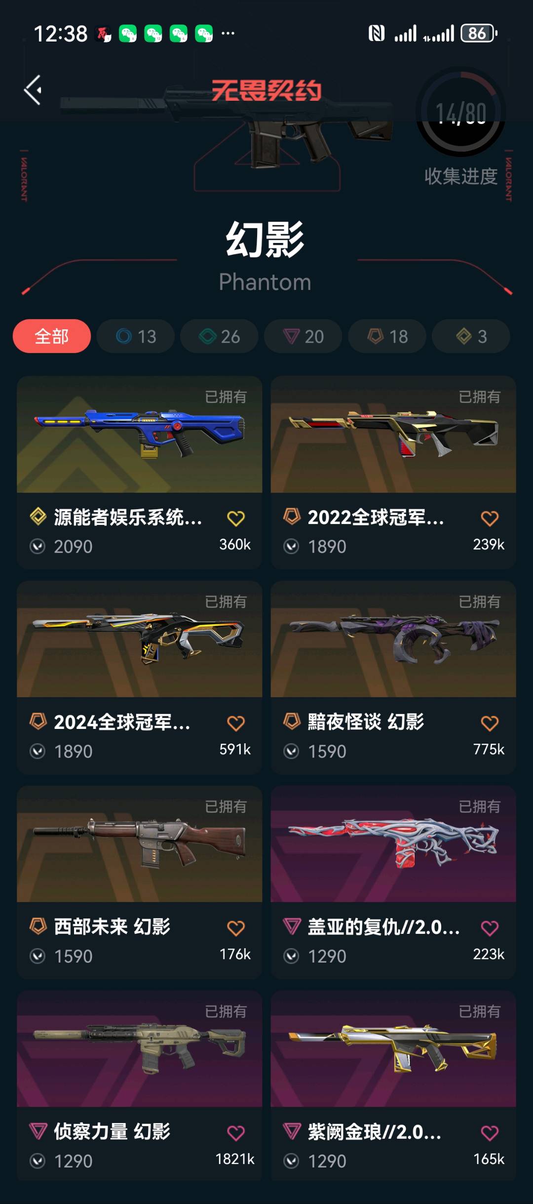 请不要挂机和秒退,谢谢🫰;镭切,威龙之刃,VCT 2025 爪刀,盖亚的复仇 狂徒,掠影 狂徒,源能者娱乐系统 幻影,侦察力量 幻影,