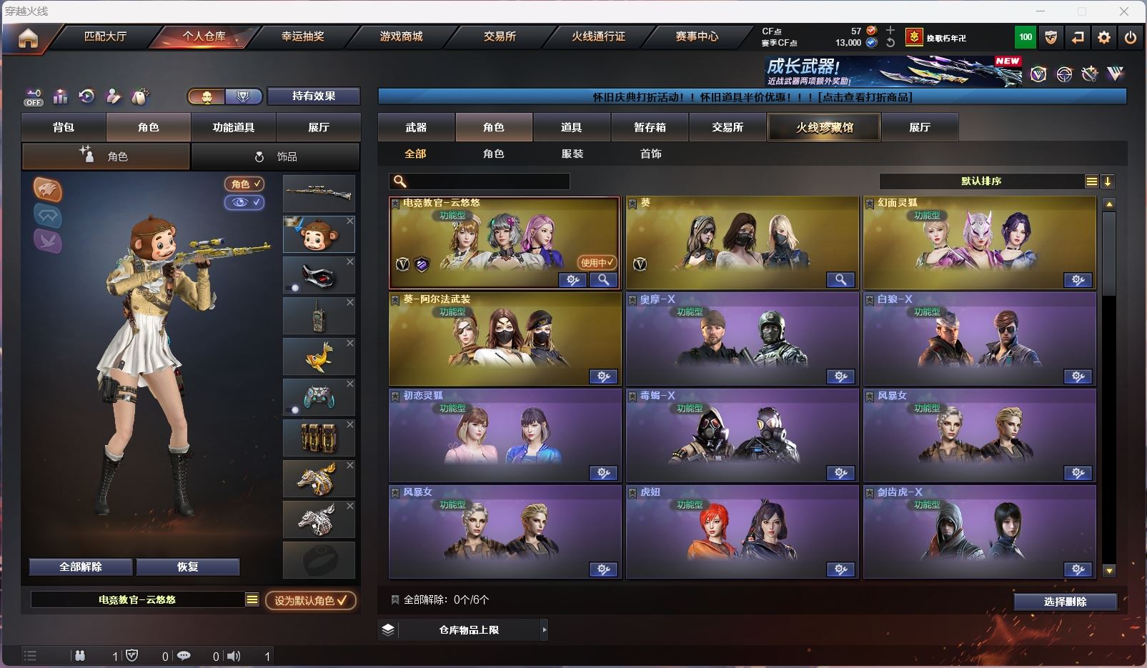 【m200竞技荣光套+usp雷暴+云悠悠】【王者星神】【6烈龙 炼狱*4 斯太尔蝴蝶 】【scar白虎】【火麒麟】【黑龙】【雷神】【黑骑士+卡】【毁灭】【极光】【武器:死神 武圣 海王 白虎电玩】【7手枪:修罗*3 天神 武圣 雷暴 竞技荣光 】【11刀具:屠龙*2 龙啸 擎天 麒麟刺 堕天神 幻灵之峰 麒麟刺 竞技荣光 】【4雷套:堕天神 幻灵 竞技荣光*2】【小人枪:雷神精英刀锋 裁决雪莉杨 斯太尔蝴蝶 】【音效卡:黑骑士音效卡 】【四防角色:职业经理 】;USP-雷暴,电竞教官-云悠悠,QBZ03-金色蔷薇,Scar Light-白虎,