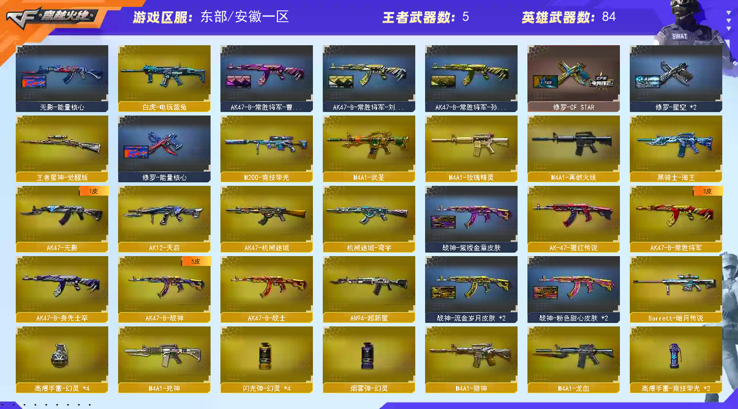 东部❤【m200竞技荣光套+usp雷暴+云悠悠】【王者星神】【6烈龙 炼狱*4 斯太尔蝴蝶 】【sc