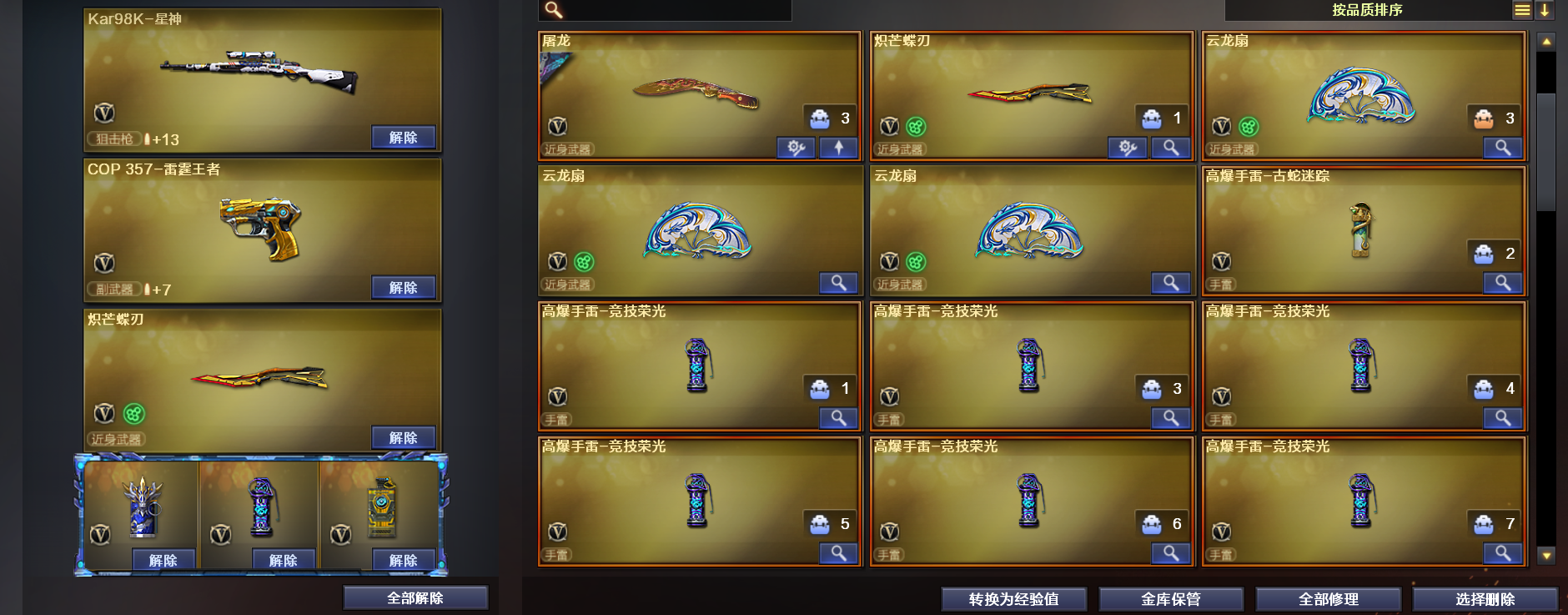 极品爆破号半成品生化号,云龙套竞技荣光套荣耀世冠套,热门狙都有